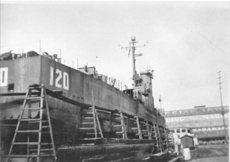 54k | USS LSM-120 drydocked, date and location unknown. | Bob Jager to the USS LSM / LSMR Association | |