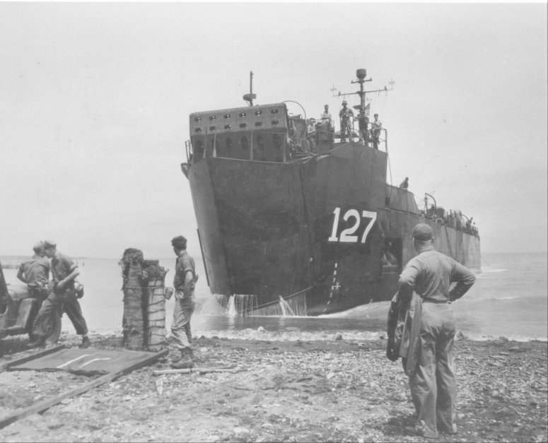 71k | USS LSM-127 beaching on Panay Island, P.I., 8 September 1945. US Navy photo # 350415. |
