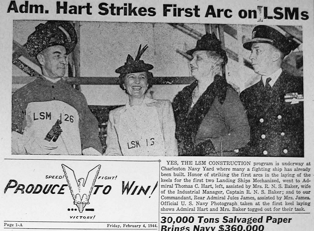 101412705 | 186k | Shipyard Newspaper "Produce to Win" article celebrating the keel laying of, LSM-126 and LSM-127 on 29 January 1944, the first LSMs to be built at