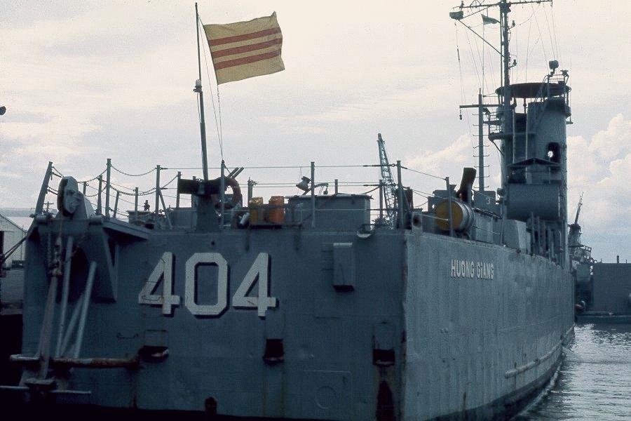 92k | RVNS Huong Giang (HQ-404) [ex-USS Oceanside (LSM-175)] at Nha Be RVN, 27 June 1971. Photo taken from APL-30 | © Richard Leonhardt | |