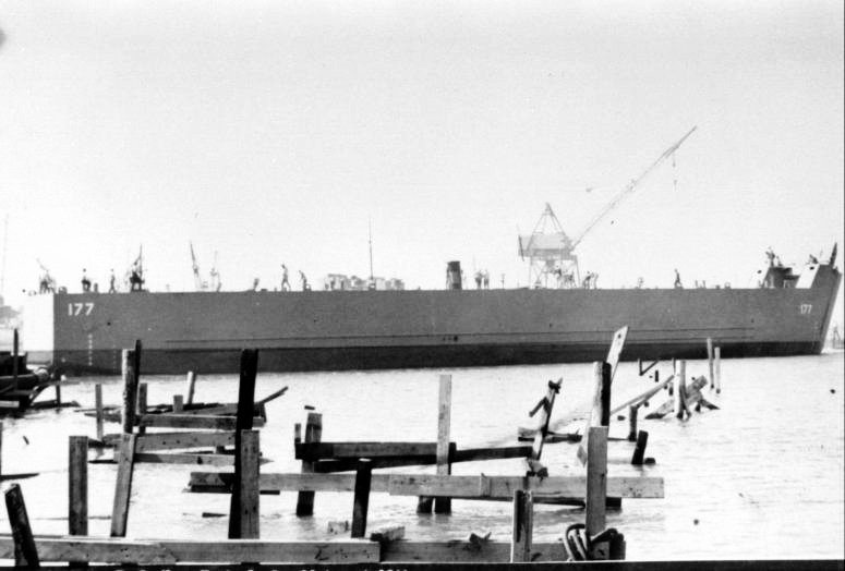 54k | LSM-177 at Charleston Navy Yard after being launched, 12 August 1944. US Navy Yard Charleston photo. |