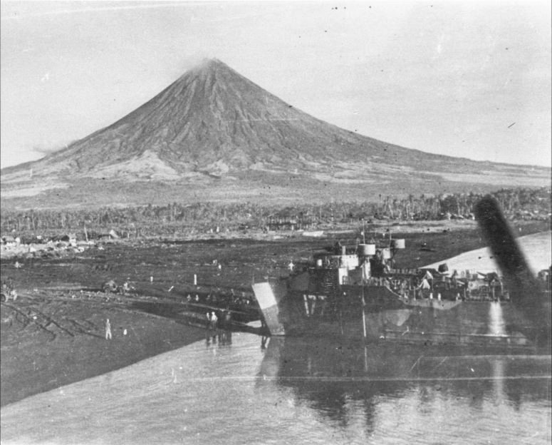 84k | USS LSM-177 beached at Legaspi, southern Luzon, P.I. Mount Mayon, 2,421 ft. looms in the background. Photo was taken from USS LSM-132, date unknown. | USS LSM / LSMR Association | |