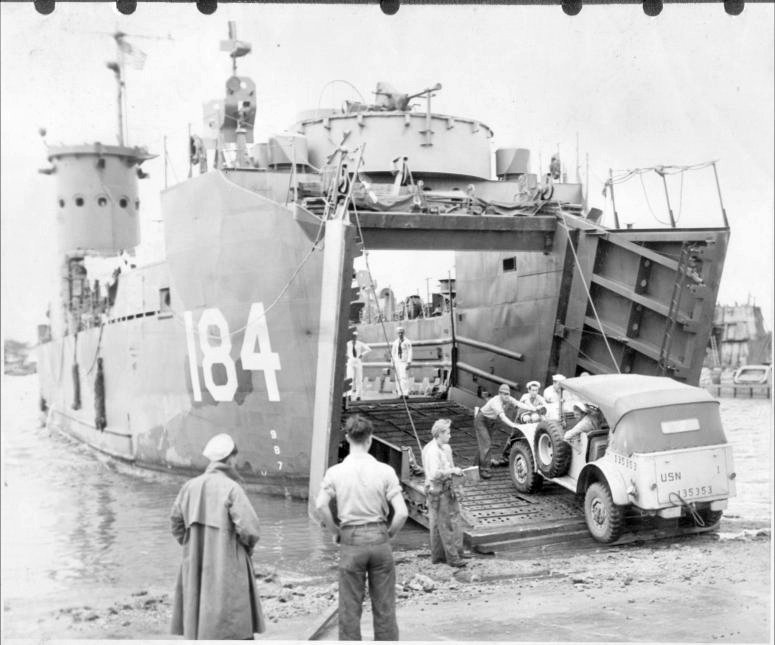 84k | USS LSM-184 beached while unloading vehicles, date and location unknown. | USS LSM / LSMR Association | |