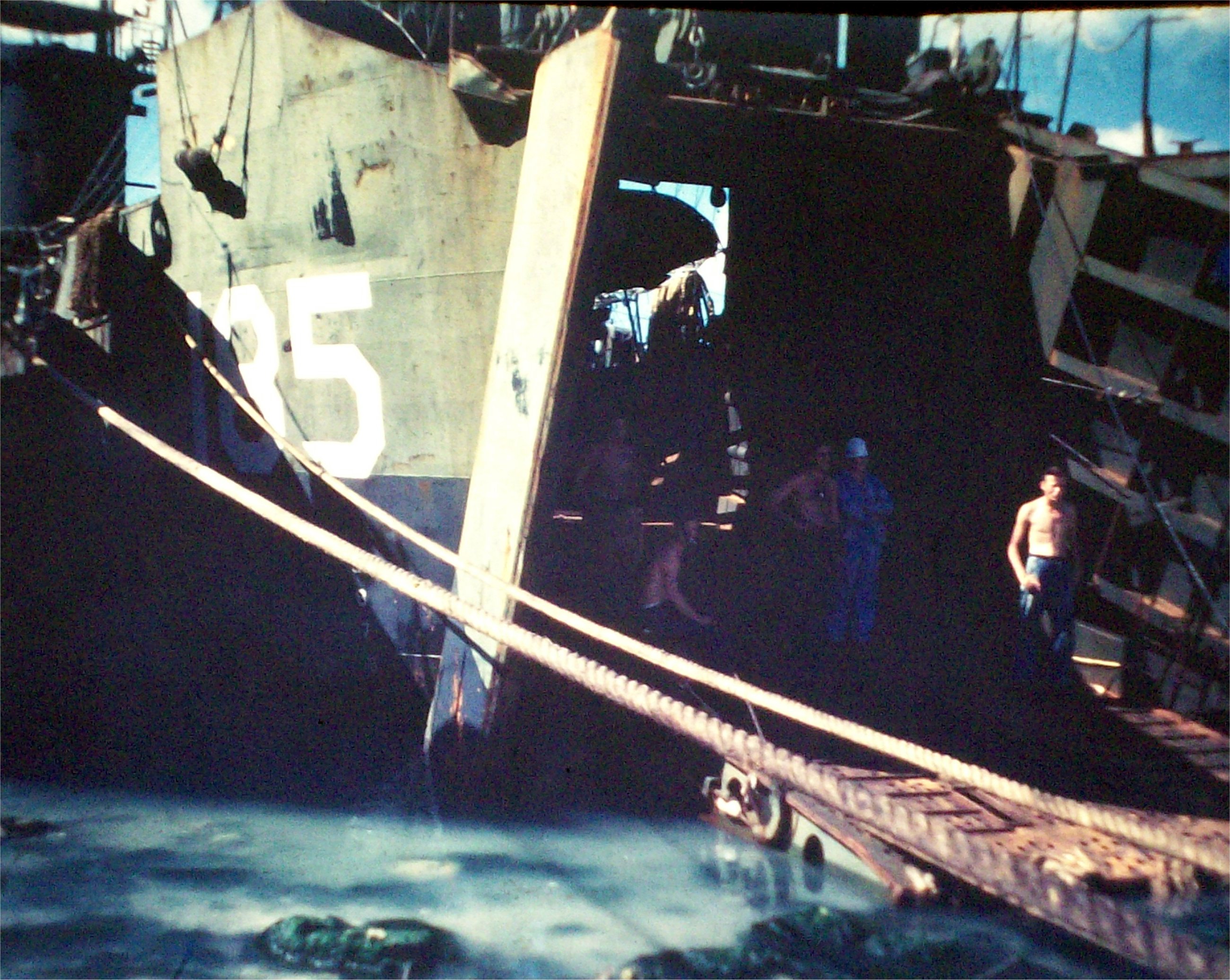 USS LSM-185 beached at Leyte, P.I. in 1945. |