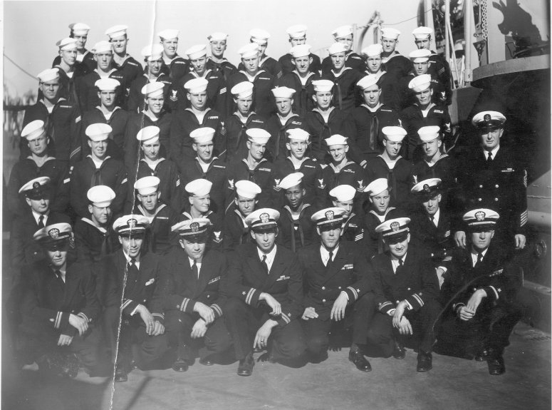 96k | USS LSM-226 crew photo 1950-51 from back to front. Back Row (6th row) - Annis, Lafeuers, Vogel, Magistrali, Dell, Shaw, Boukal, Parlette, R.L. Smith 5th Row - Simmons, Rowlett, Avina, Pascoe, Reynolds, Bellanger, P.Henderson, Chapman, Lancaster 4th Row - Nunn, Herrington, Kesner, Stark, Keeton, Van hise, Davis, Hoskins, Beasley 3rd Row - Howell, Harper, Thomas, Johnson, Fletcher, Henderson, Loeser, Hanson, Kaiser 2nd Row - Ethington, Heye, Tauasci, Nauer, Mumford, Gregg, Brackett, Hopper, Wisely Front Row (1st row) - Doc Juergens, Ltjg. Porcari, Lt. Croskey, Lt. Mikesell (Ships Capt.) , Ltjg. Mohr, Ltjg. Duvall, Ens. Gilmartin |