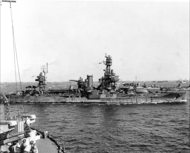 77k | USS LSM-266 off the port bow of USS Texas (BB-35)