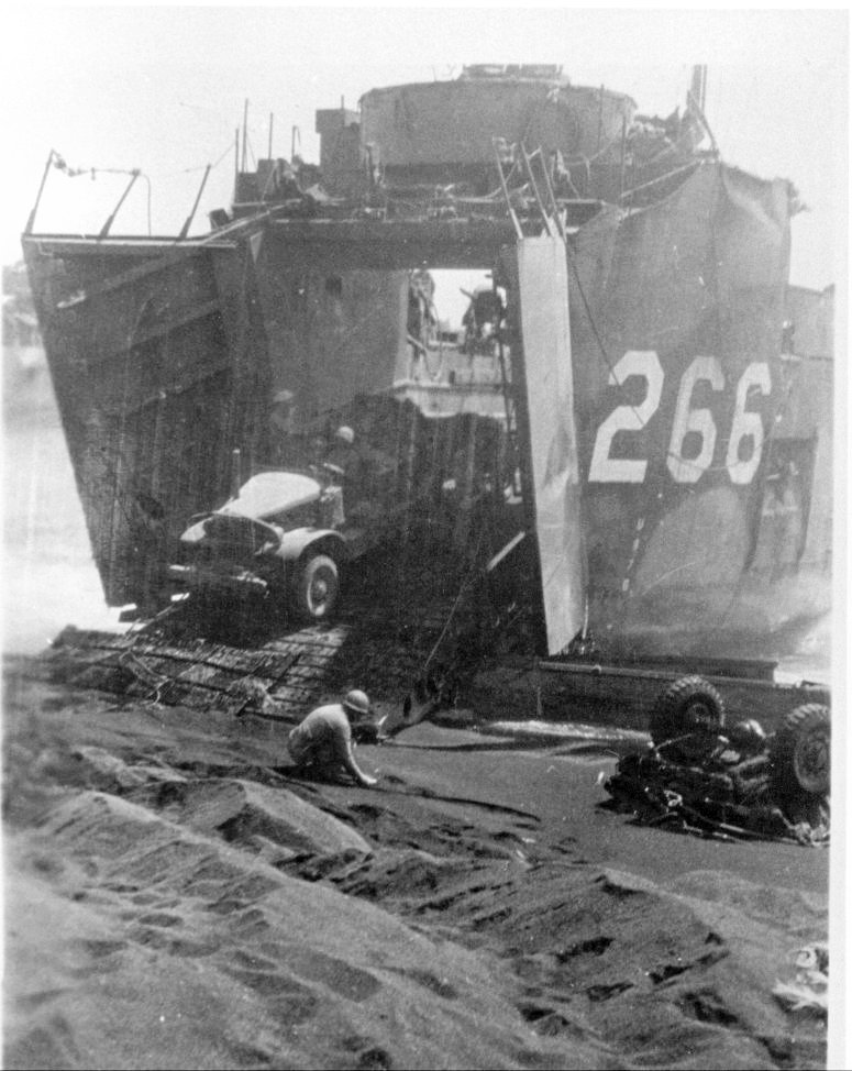 82k | USS LSM-266 beached on Green Beach at Iwo Jima, February 1945. US National Archives photo # 80-G-318047 a US Navy photo now in the collections of the US National Archives. |