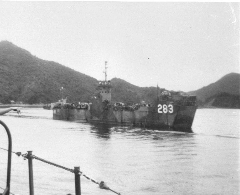 USS LSM-283 under way at Sasebo Harbor, Kyushu, Japan in September 1945. Photo taken from USS LSM-343 |