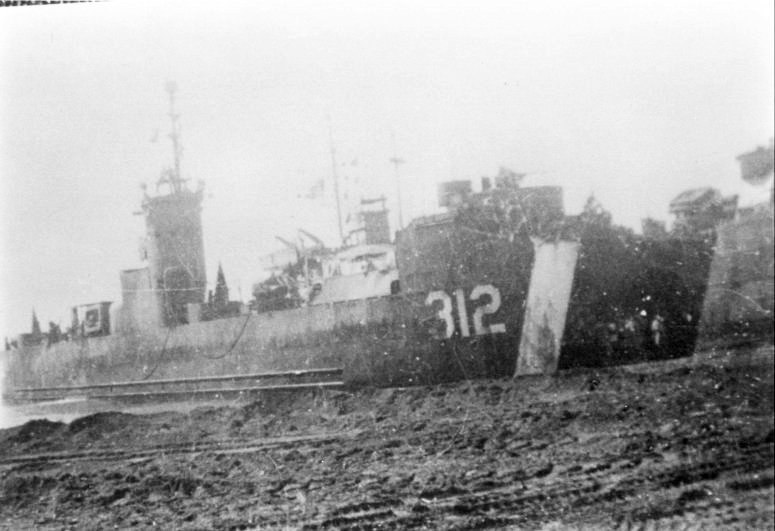 65k | USS LSM-312 beached, date and location unknown. | USS LSM / LSMR Association | |
