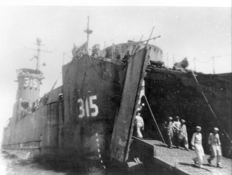 62k | USS LSM-315 beached at Hollandia, New Guinea, 1945. | Dave Perham and the USS LSM / LSMR Association | |