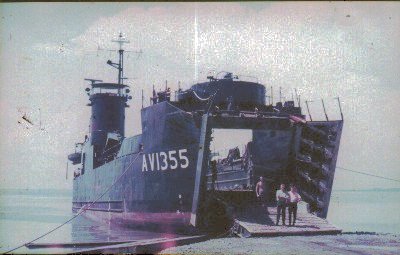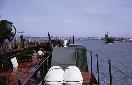42k | Vernon Sturdee (AV-1355) reverses off the landing at Saigon in June 1966 after transporting heavy equipment to the