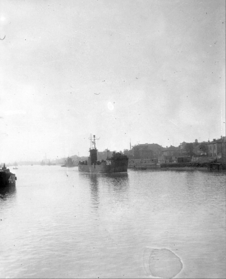 77k | USS LSM-364 under way, and LCT-404 moored at the left margin of the photo, date and location unknown. | Robert Six USS LSM-232 to the USS LSM / LSMR Association | |