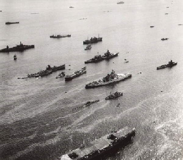 ![]() 84k | Detail from a panoramic view of the US fleet under review by President Harry S Truman, New York City, 27 October 1945. This segment includes the battleship New York (BB-34) (left) and cruiser Helena (CA-75) (right). | Photo & text courtesy of William T. Barr via Joel Shepherd & cv6.org, submitted by Mike Green. |