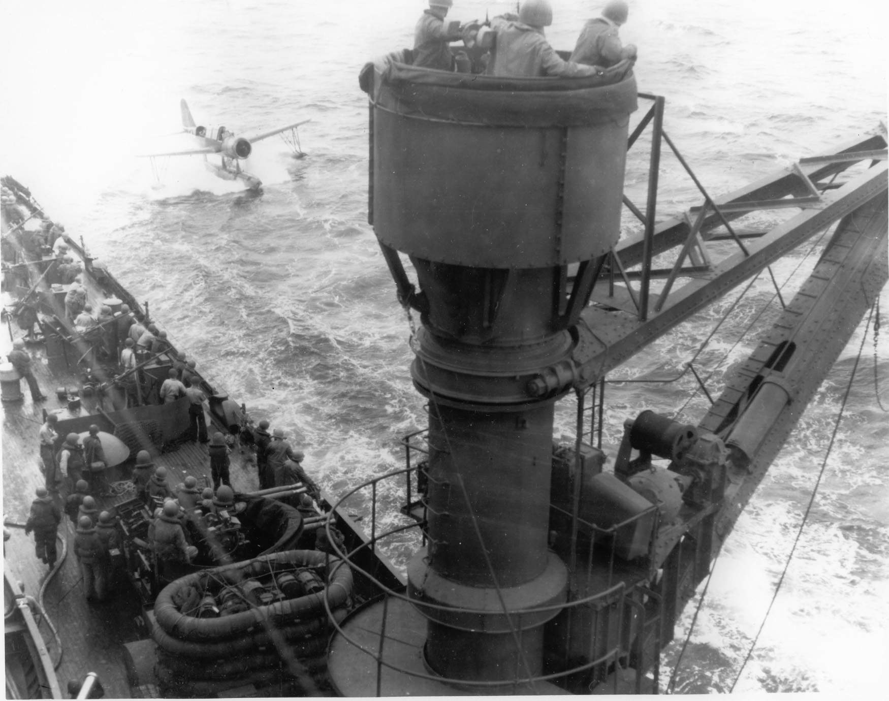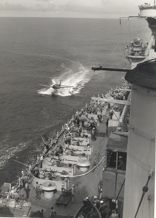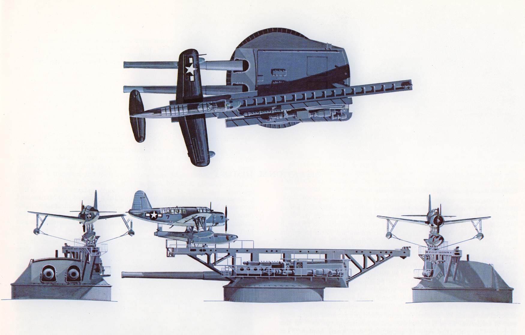 | ![]() 145k | Turret #3 with Type P, MK IV catapult and Kingfisher AC. | USN photo submitted by Pieter Bakels. |