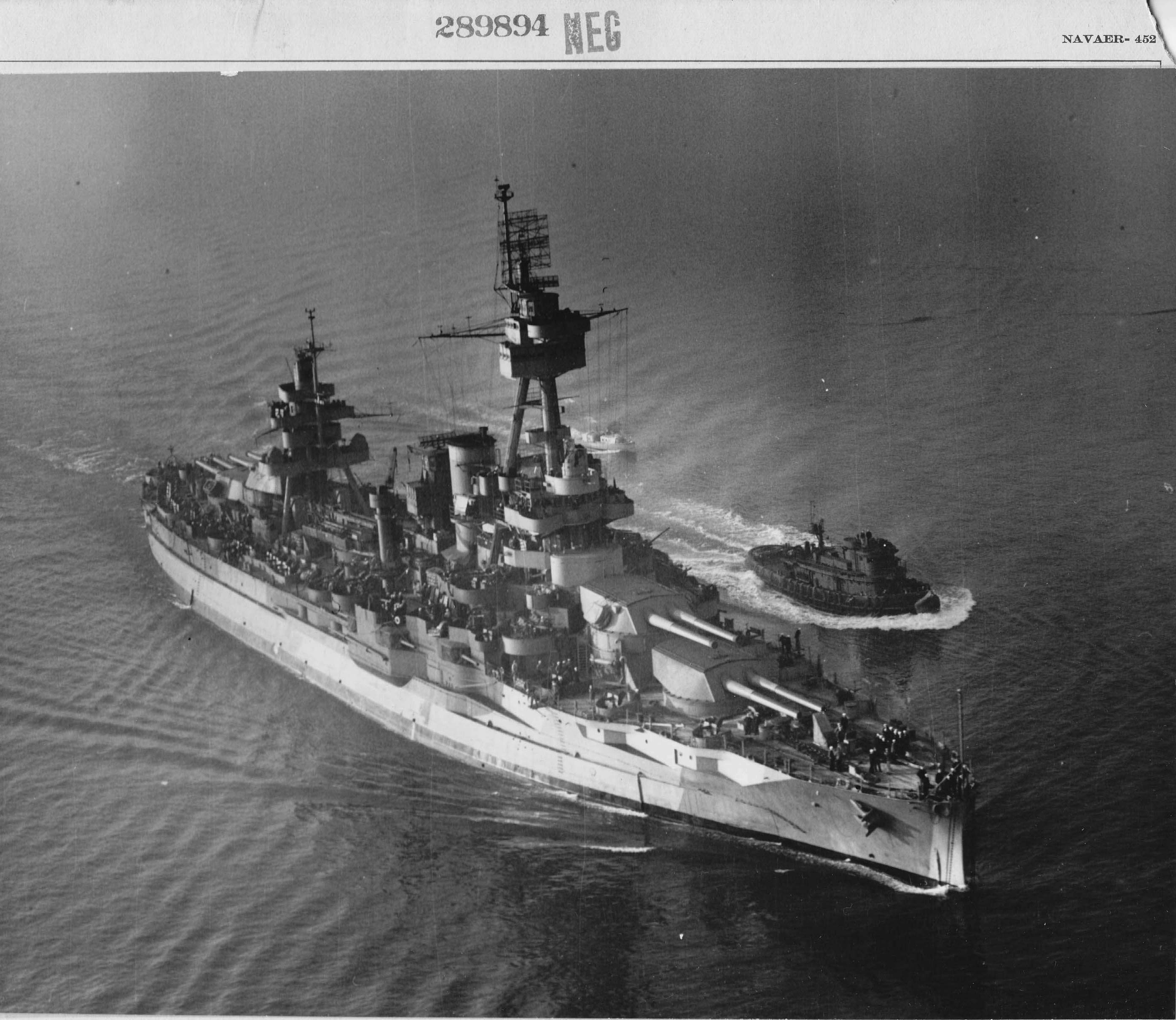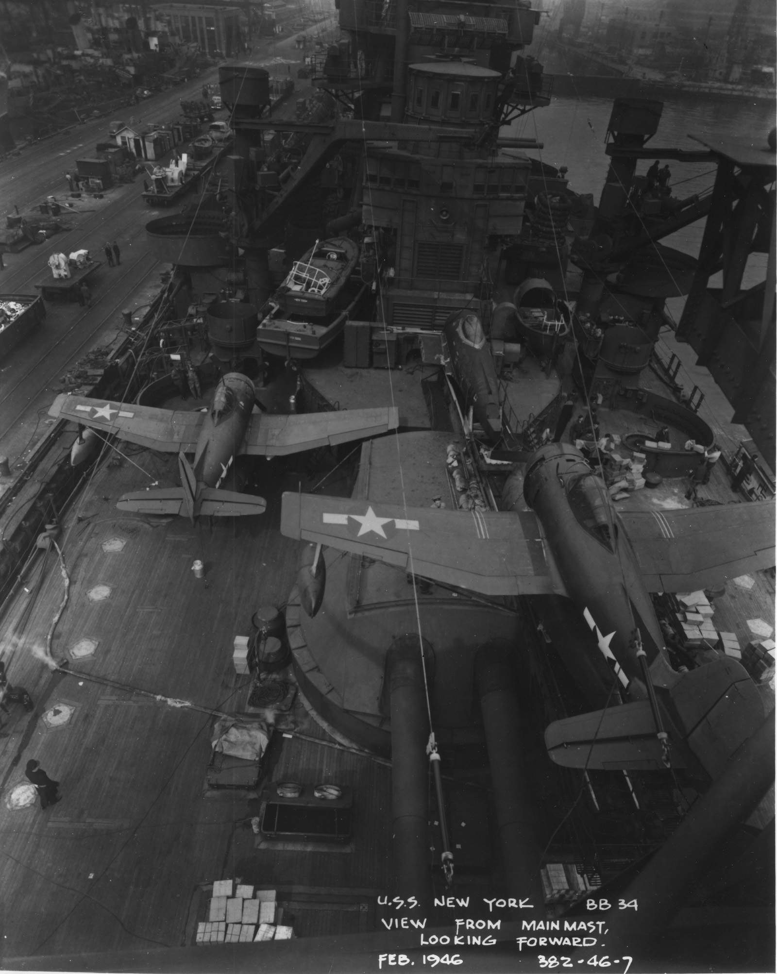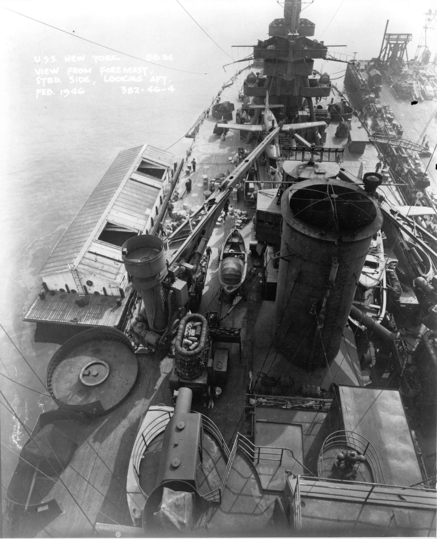 ![]() 6.80k | New York (BB-34) starts on her way to the Marshall Islands for atomic bomb tests, 26 January 1946. | This PDF contains 4 newspaper clippings of the history of the New York from 1945 - 46. Photo & PDF courtesy of Ron Reeves (of blessed memory) |