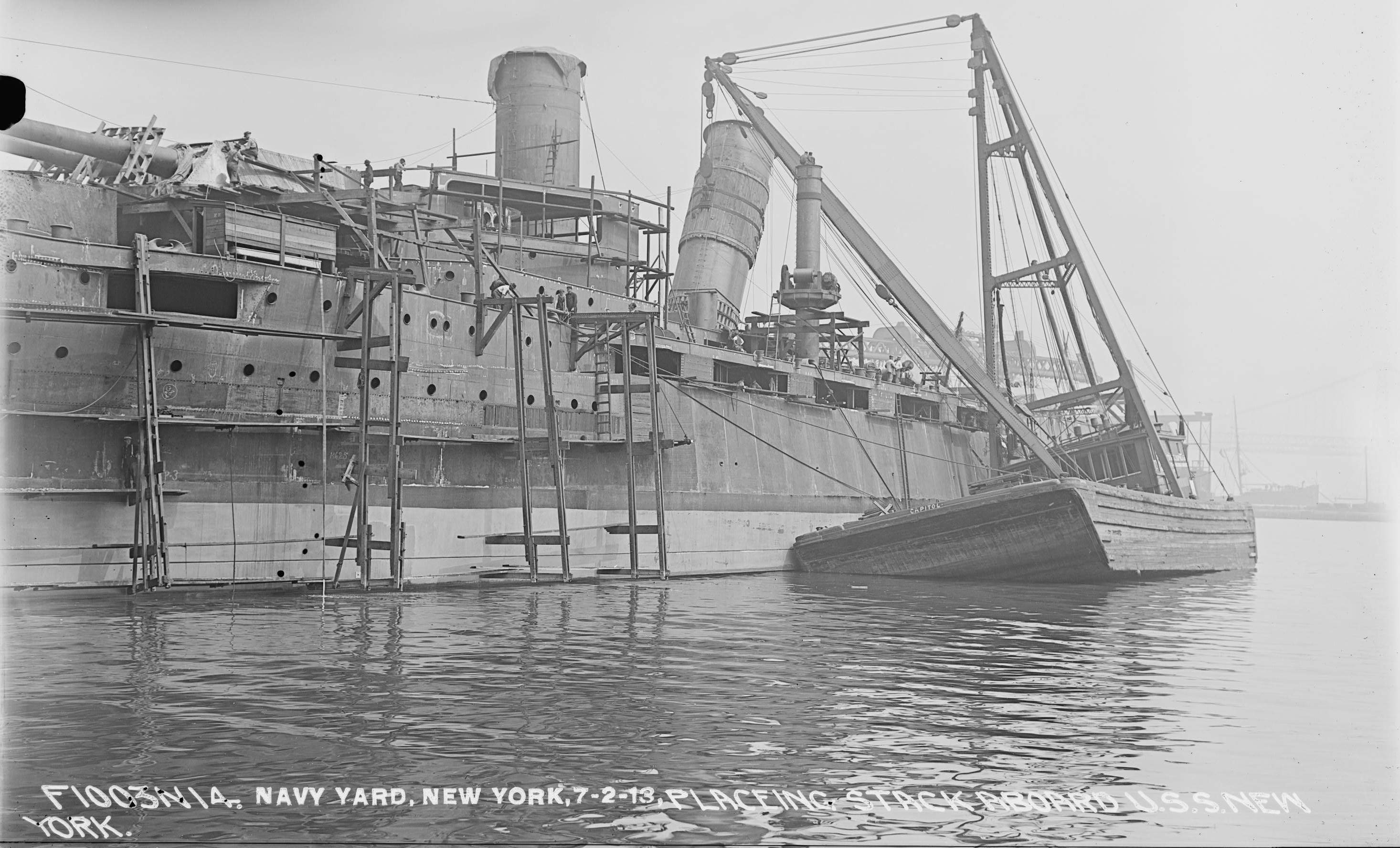 National Archives Identifier: 6038682. | Agency-Assigned Identifier: F619 N46 Photo courtesy of catalog.archives.gov ![]() 538k | Placing Stack Aboard New York (BB-34), 2 July 1913. | National Archives Identifier: 6038137 |