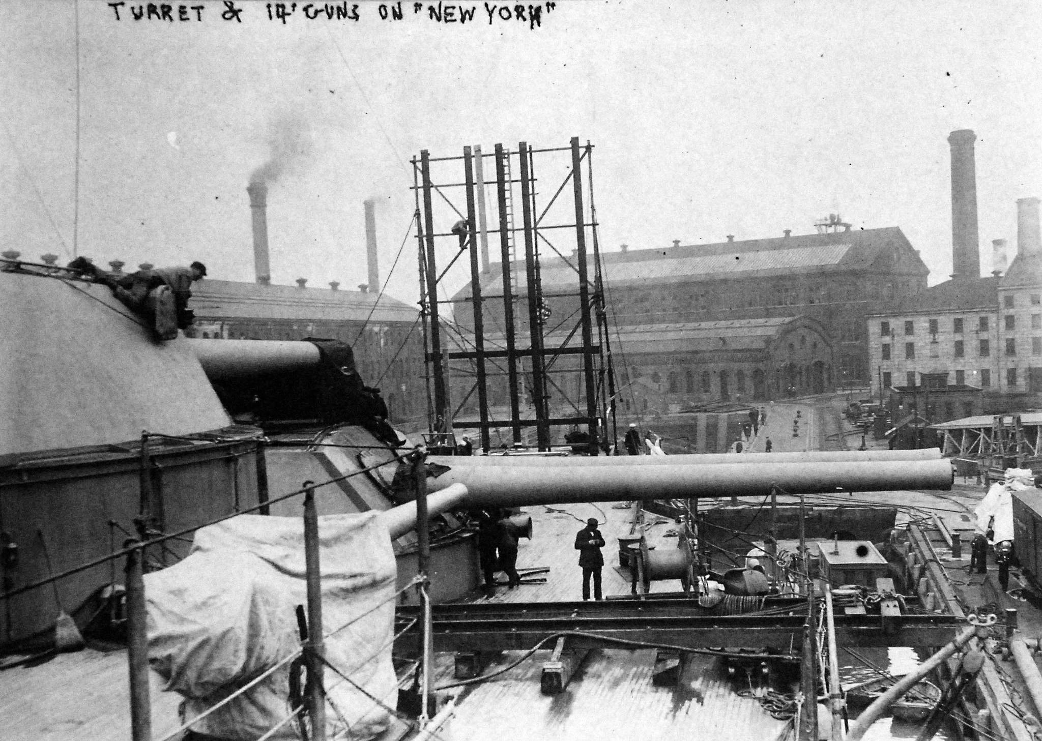 ![]() 401k | New York (BB-34) turret and 14" guns, at the New York Navy Yard, New York, 20 April 1914. | USN photo # Lot 10794-6 from the George G. Bain Collection. Courtesy of the Library of Congress, courtesy of the National Museum of the U.S. Navy via flickr.com. |