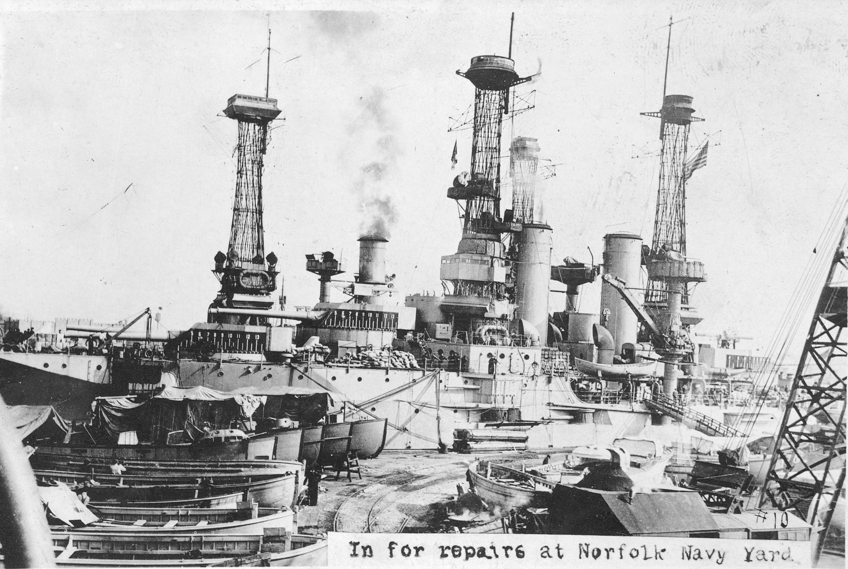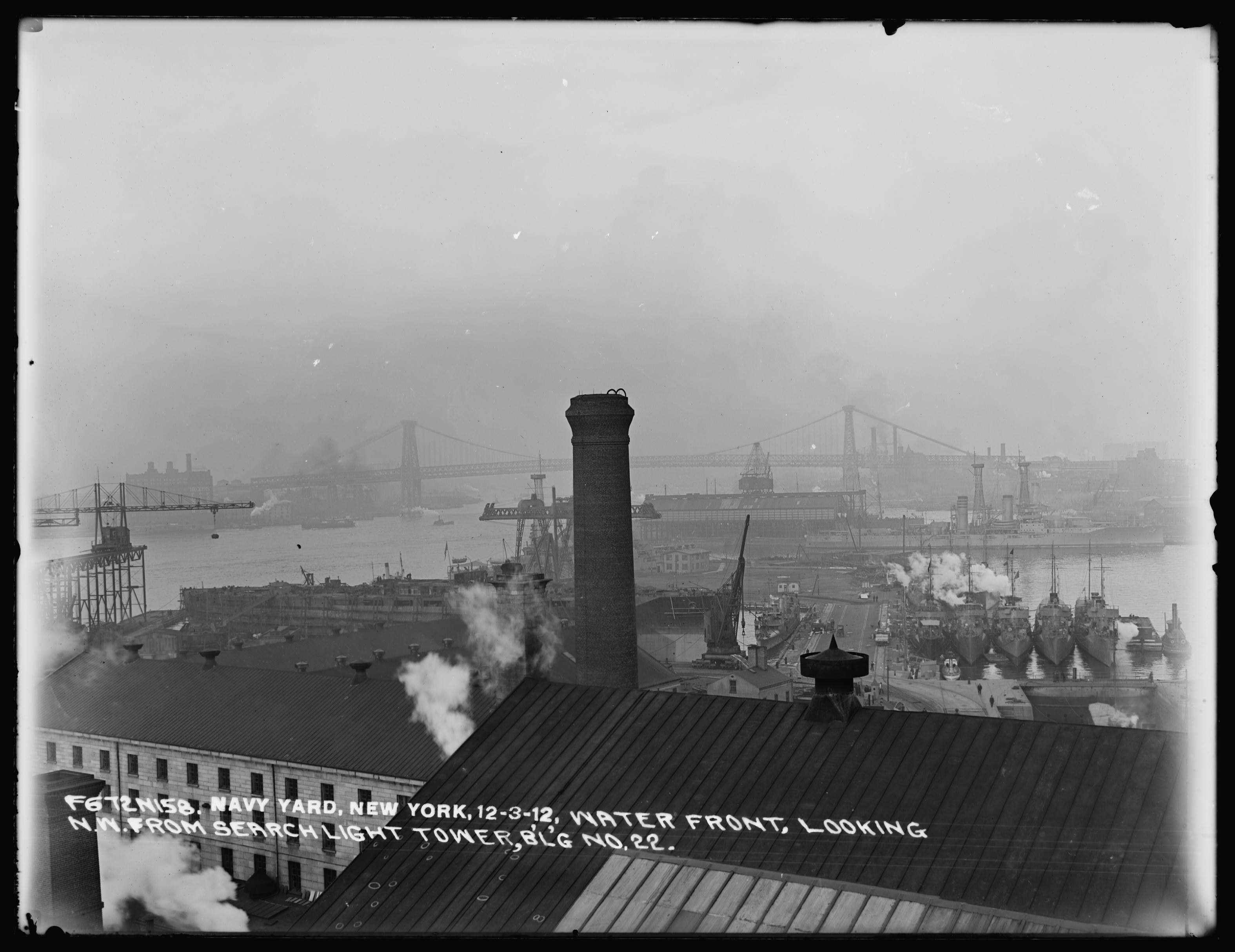Text courtesy of Sponsors of the United States navy; Benham, Edith Wallace, comp; Hall, Anne Martin, comp 1797-1913, pg. 123, courtesy of Boston Public Library. | PDF Image and text provided by University of Oregon Libraries; Eugene, OR. Photo by Polk County Observer. (Monmouth, Polk County, Or.) 1888-1927, 26 November 1912, Image 1, via chroniclingamerica.loc.gov. ![]() 013483 4241k | Water Front, Looking Northwest from Search Light Tower, Building Number 22, 3 December 1912. The New York (BB-34) is in front of the building under construction. | National Archives Identifier: 6281655. | Photo courtesy of catalog.archives.gov, via Daniel Hacker. ![]() 1.47k |