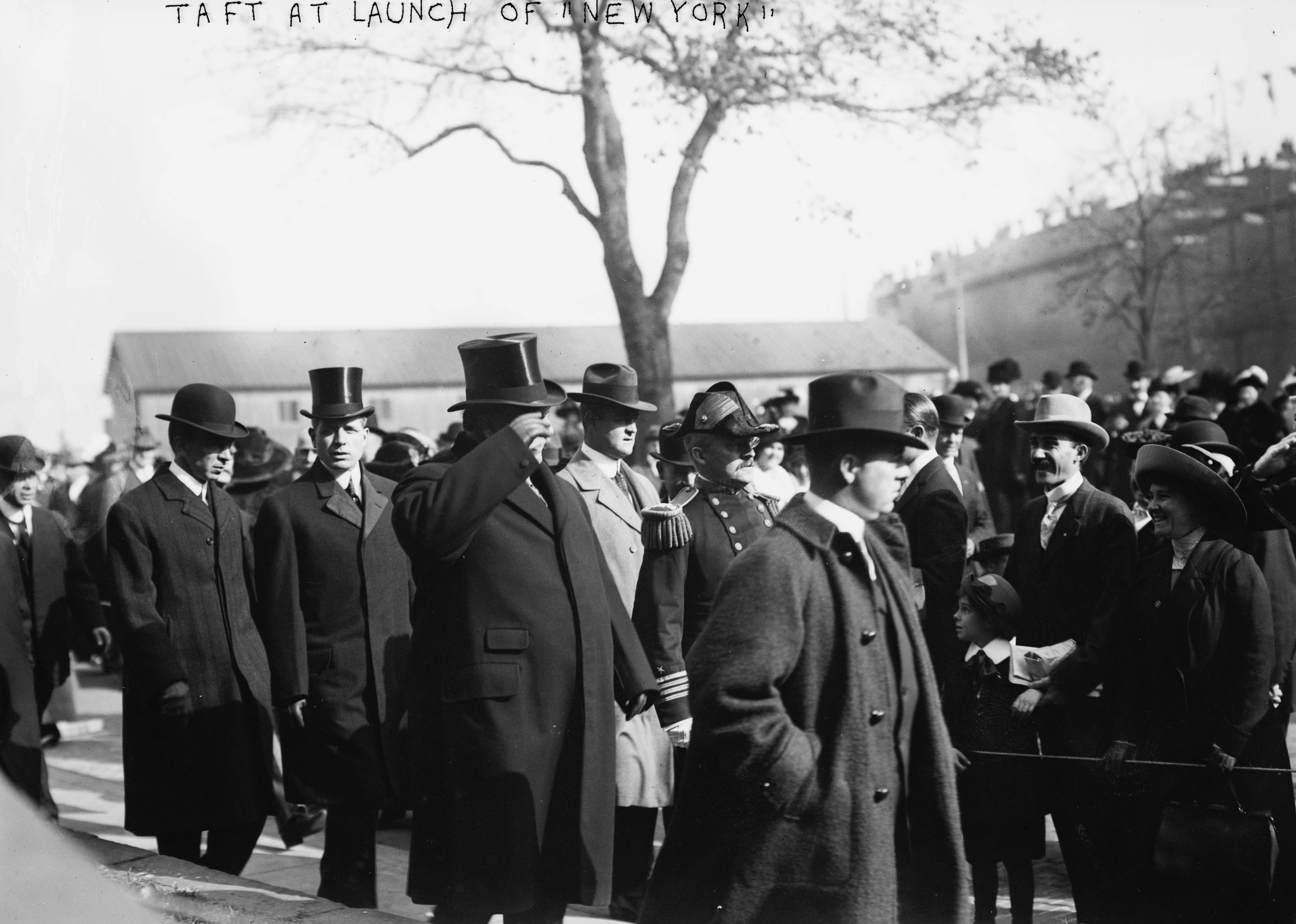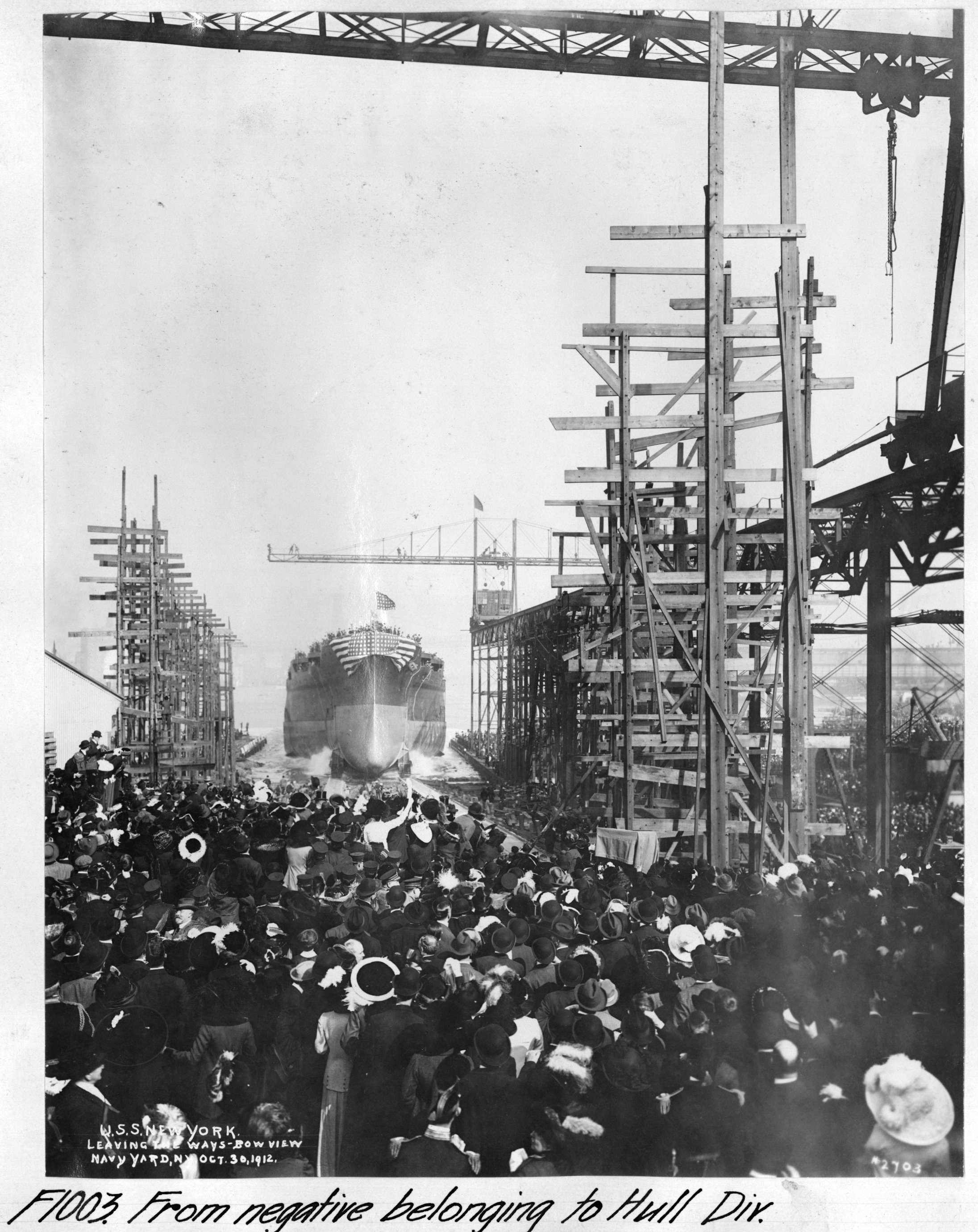 Photo courtesy of catalog.archives.gov ![]() 013434o 1.01k | President William Howard Taft at the launching of the battleship the New York (BB-34) at the New York Navy Yard in Brooklyn, New York, 30 October 1912. | Photo by Bain News Service, courtesy of loc.gov.. | Reproduction Number LC-DIG-ggbain-10716. ![]() 1.00k | President Taft & Sec. of Navy Henry Lewis Stimson at the Sponsor's stand during the launching of the New York (BB-34), 30 October 1912. | Photo No. f1003n2700, Brooklyn Navy Yard Archive - courtesy National Archive and Records Administration, Northeast Region - NYC, Record Group 181 via flickr.com. | ![]() 013412e 1.84k | A many hatted New York crowd await New York (BB-34) going down the ways on 30 October 1912, at the Brooklyn Navy Yard, New York City, New York. | Photo by Bain News Service, courtesy of loc.gov.. | Reproduction Number LC-DIG-ggbain-10718. ![]() 013011m 1.24k | New York (BB-34) on the launch, 30 October 1912, at the Brooklyn Navy Yard, New York City, New York. The ship's sponsor was Elsie Calder, the daughter of New York politician William M. Calder. | Detroit Photographic Company. Courtesy of the Library of Congress. Photo # Lot 3000-S-11 from the National Museum of the U.S. Navy via flickr.com. | ![]() 013412p 1.25k | New York (BB-34) before going down the ways on 30 October 1912, at the Brooklyn Navy Yard, New York City, New York. | Photo by Bain News Service, courtesy of loc.gov.. | Reproduction Number LC-DIG-ggbain-10716. ![]() 1.20k | New York (BB-34) leaving the ways on 30 October 1912. | Photo No. f1003n2704, Brooklyn Navy Yard Archive - courtesy National Archive and Records Administration, Northeast Region - NYC, Record Group 181 via flickr.com. | ![]() 974k | A many hatted crowd; Naval officers with fore & aft, Bowler hatted men & plumed ladies in their finery watch as the New York (BB-34) enters the water on 30 October 1912. | Photo No. f1003n2703, Brooklyn Navy Yard Archive - courtesy National Archive and Records Administration, Northeast Region - NYC, Record Group 181 via flickr.com. | ![]() 013468h 1.10k | New York (BB-34), kroY weN (43-BB). | The New York at the end of the ways; spectators reach new heights to get a reverse view of the proceedings on 30 October 1912. Photos by Bain News Service, courtesy of loc.gov. & loc.gov. | Reproduction Numbers LC-DIG-ggbain-10717 & 10719. ![]() 013404b 1.17k | New York (BB-34) at the end of the ways. | Photo by Bain News Service, courtesy of loc.gov. | Reproduction Number LC-DIG-ggbain-10720. ![]() 1.19k | New York (BB-34) is waterborne on 30 October 1912, at the Brooklyn Navy Yard, New York City, New York | Detroit Photographic Company. Courtesy of the Library of Congress. Photo # Lot 3000-S-9 from the National Museum of the U.S. Navy via flickr.com. | ![]() 1.01k |