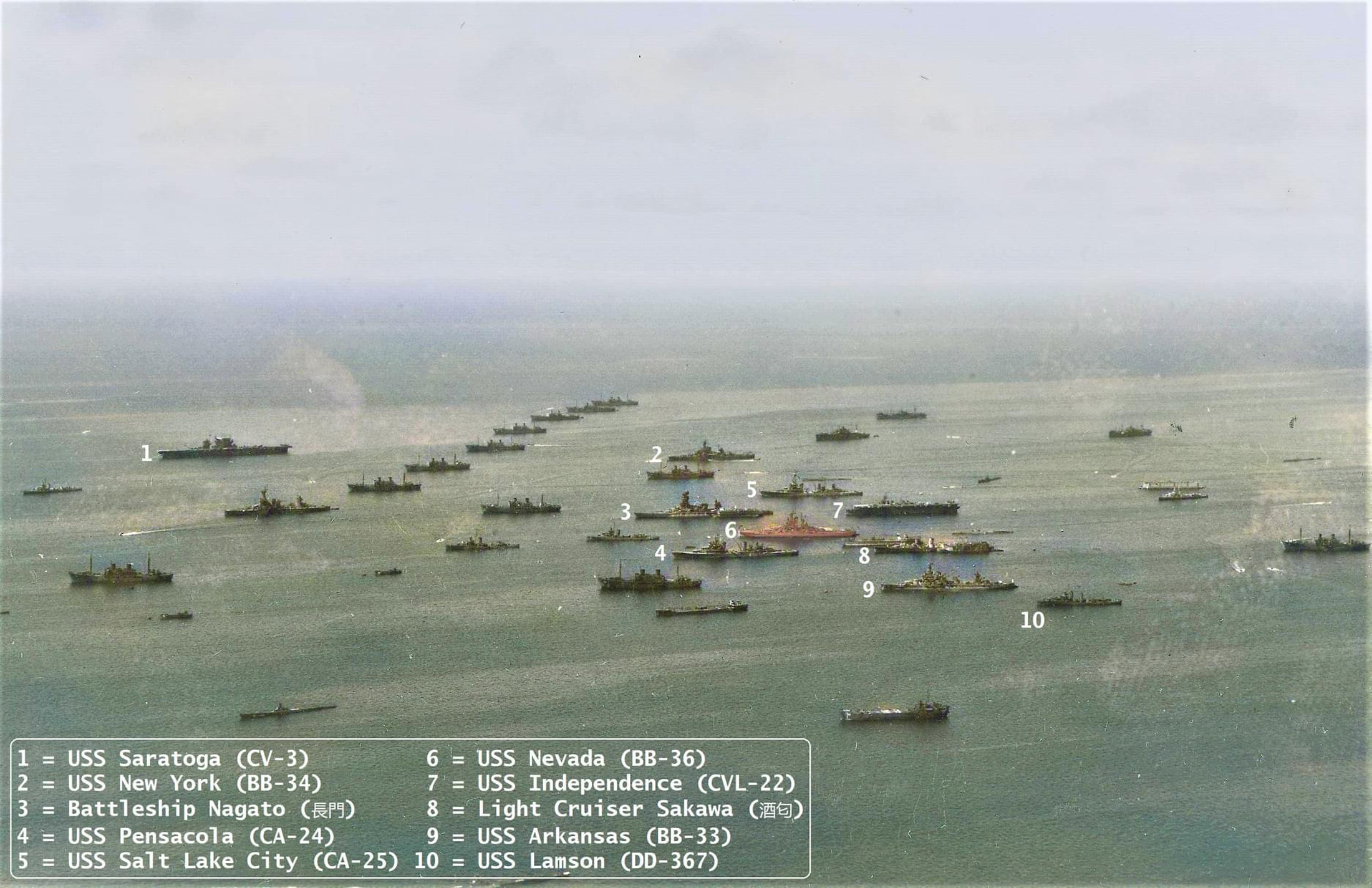 ![]() 013446w 984k | VIPs & Officers on New York (BB-34) Post-Able. | National Archives Identifier: 6038885. | Local Identifier: 374-ANT-18-5. Photo courtesy of catalog.archives.gov, via Daniel Hacker. ![]() 013436c 1.43k | Project 18 - Operation Crossroads (Bikini) Test Activities: Nevada (BB-36) colored orange with New York (BB-34) & other major vessels listed in the table at the bottom of the photo. | Record Hierarchy | Record Group 374: Records of the Defense Threat Reduction Agency, 1943 - 2005 Series: Photographs of Atmospheric Nuclear Testing at Pacific Island and Nevada Test Sites, 1946 - 1962. Project 18 - Operation Crossroads (Bikini) Test Activities National Archives Identifier: 146763102. Local Identifier: 374-ANT-18-CR-553-14. Photo courtesy of catalog.archives.gov, via Yu Chu. ![]() 45k |