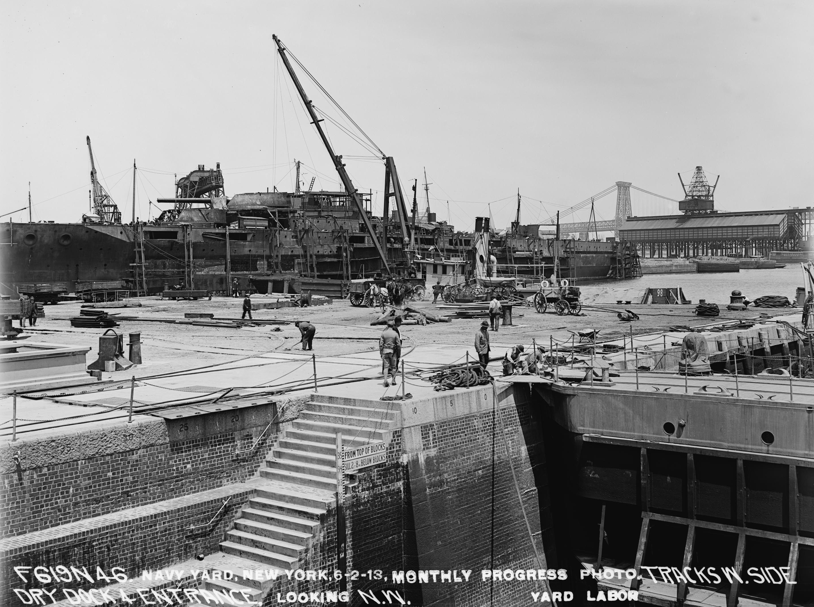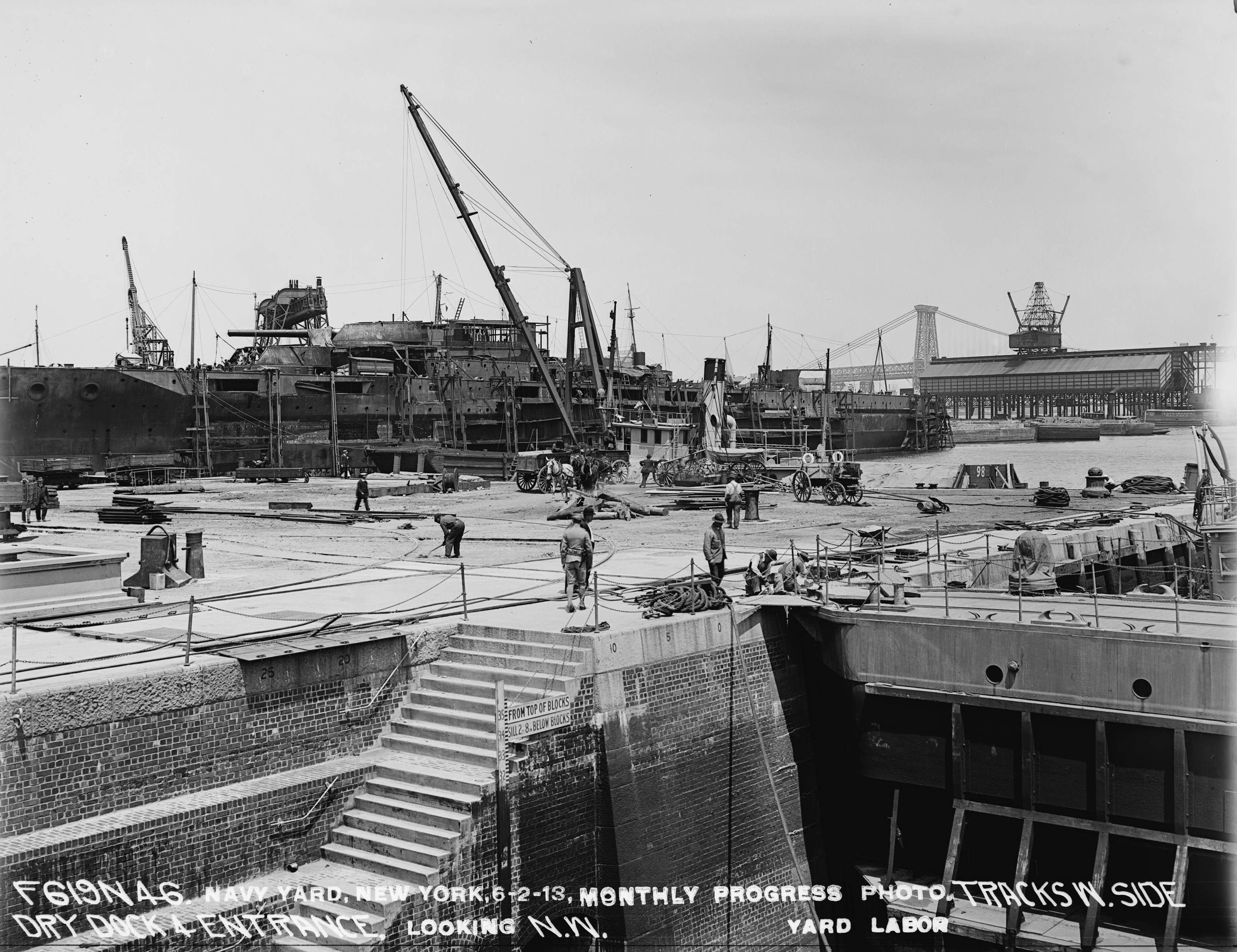 Photo courtesy of catalog.archives.gov ![]() 013441 948k | Monthly Progress Photo, Tracks West Side Dry Dock 4 Entrance, Looking Northwest, Yard Labor, 2 June 1913.