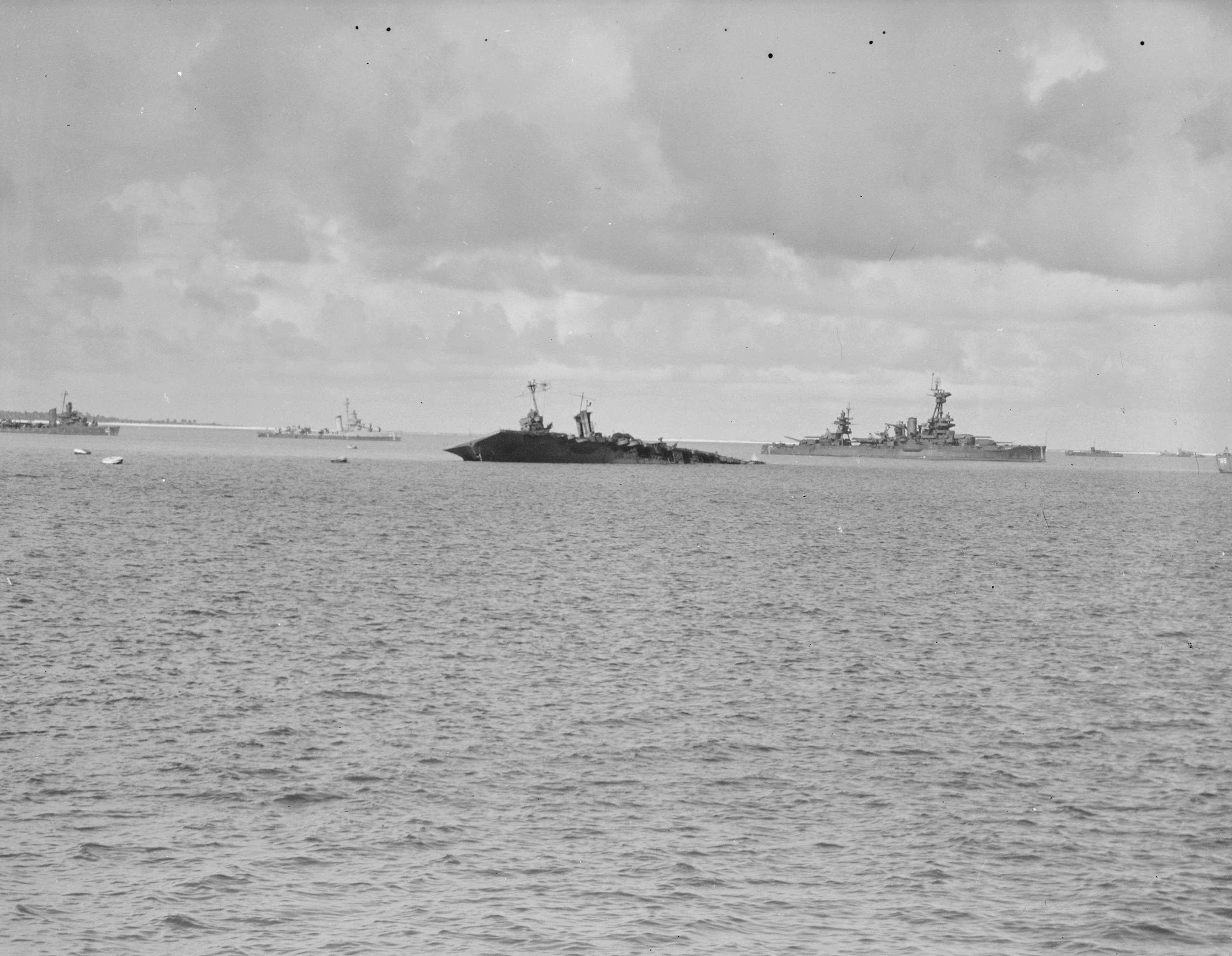 | ![]() 013446s 740k | The Saratoga (CV-3) going down at 1540 Baker Day in Bikini Lagoon during Operation Crossroads, 25 July 1946. | The New York (BB-34) appears off to the right. National Archives Identifier: 520999. | Local Identifier: 80-G-627506 Photo courtesy of catalog.archives.gov, via Daniel Hacker.