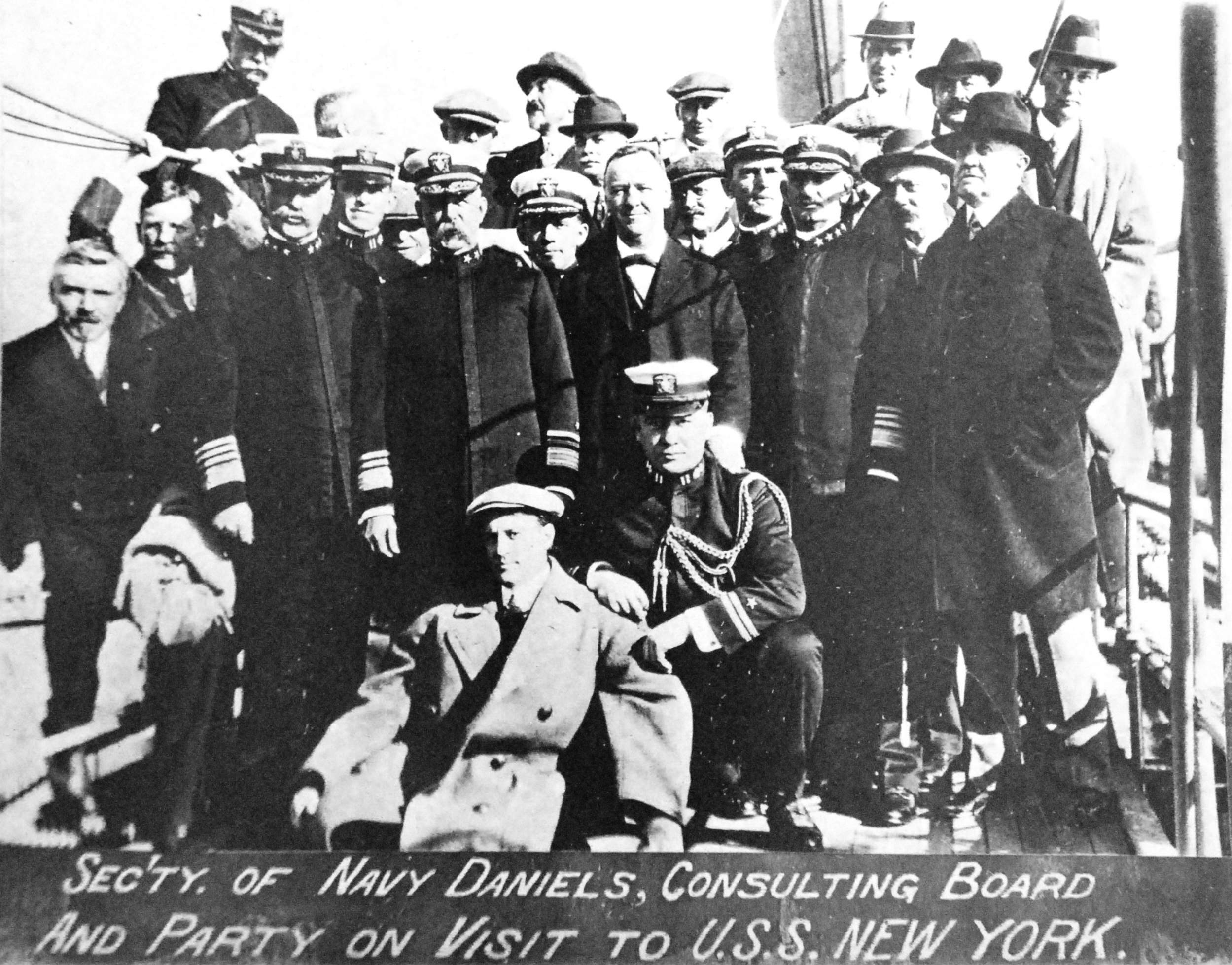 Secretary of the Navy Josephus Daniels, Consulting Board and Party on visit to New York (BB-34), circa World War I. |