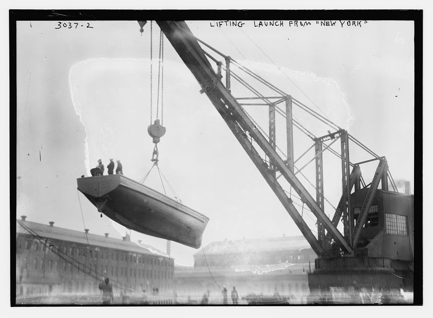 National Archives Identifier: 167817994. | Photo courtesy of catalog.archives.gov ![]() 1.01k | Three photo PDF of Crane Hercules, Lifting Turret Number 2, New York (BB-34), From Shore to Deck, Shown Swinging Clear, Weight 220,000 Pounds, 8 May 1913. | National Archives Identifier: 6038503 |