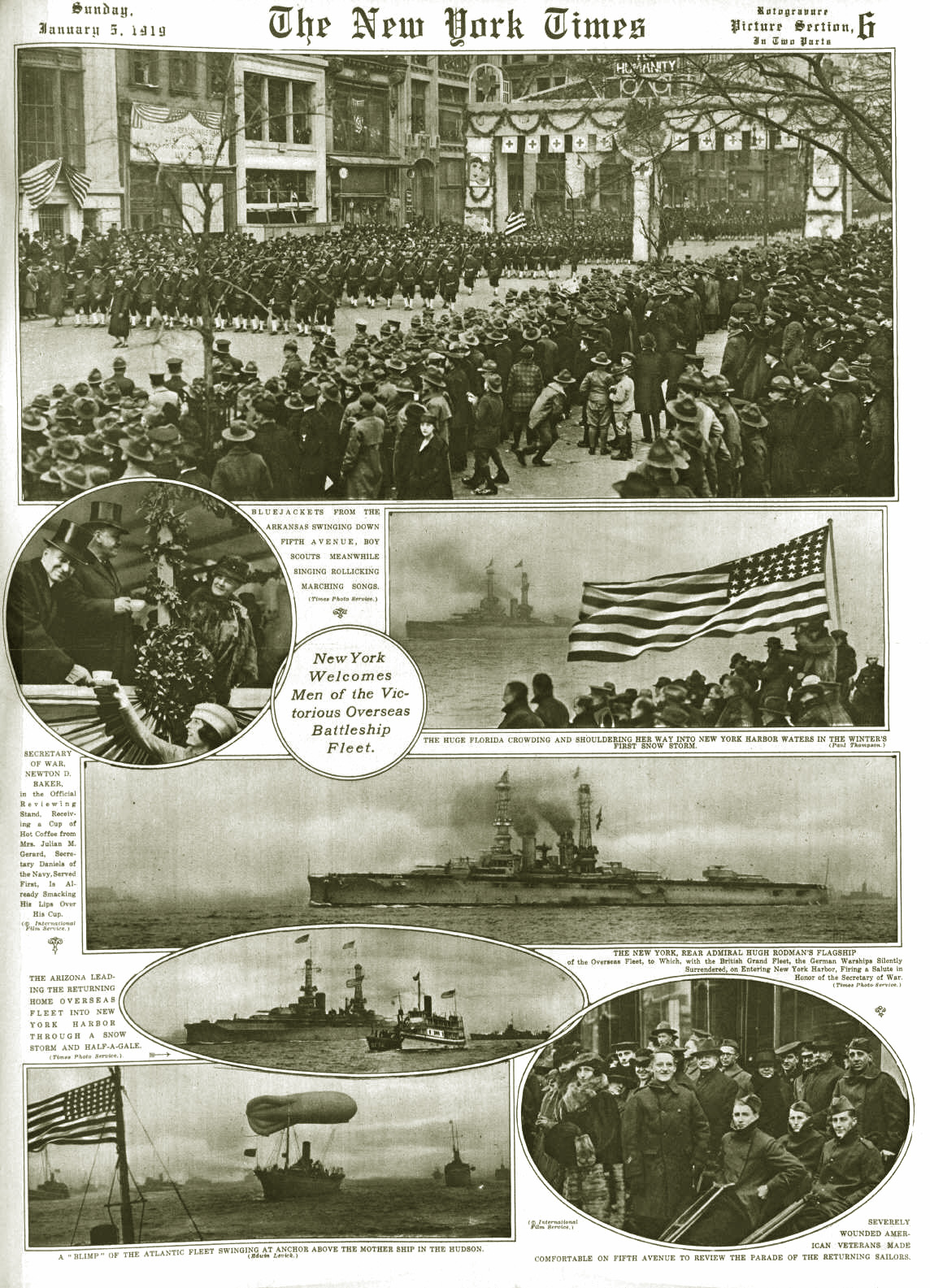 SUPER-DREADNOUGHT NEW YORK (BB-34) OFF FOR Veracruz. | NEW YORK SAILS IN WARTIME HASTE Big Warship May Be Sent Through Canal to Do West Coast Duty. AMMUNITION STREWS DECKS; TARS HAPPY Crowds Bid Super-Dreadnought Good Voyage to Troubled Mexican Waters. Image and text provided by Library of Congress, Washington, DC. | Photo by New-York Tribune. (New York [N.Y.]) 1866-1924, 27 April 1914, Image 3, via chroniclingamerica.loc.gov. ![]() NR |
