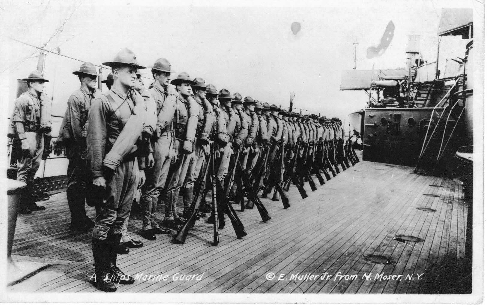 MARINES BOARDING NEW YORK (BB-34) TO GO TO MEXICO |