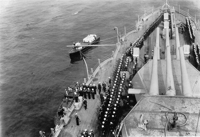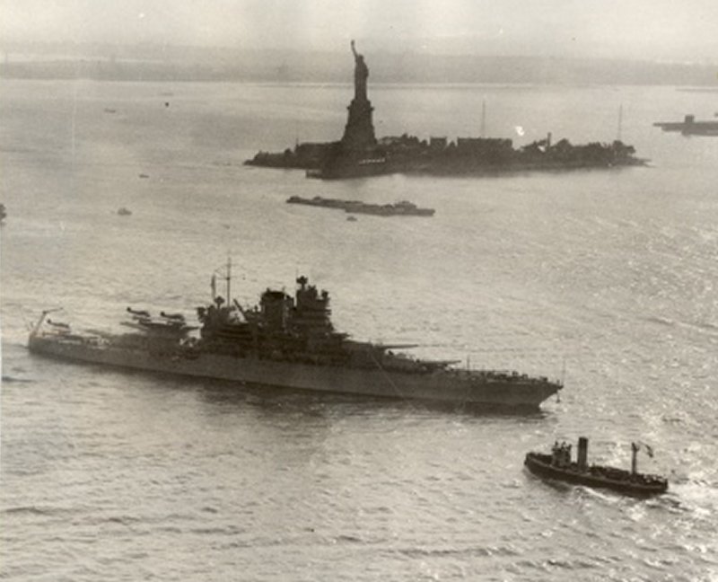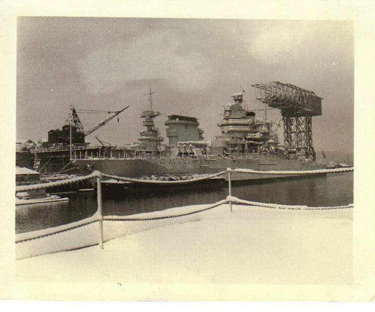 Note that the secondary armament has already been removed. AP Wire photo courtesy of Sunday News New York's Picture Newspaper 28 September 1947, submitted by Joe MacDonald. | ![]() 410k |