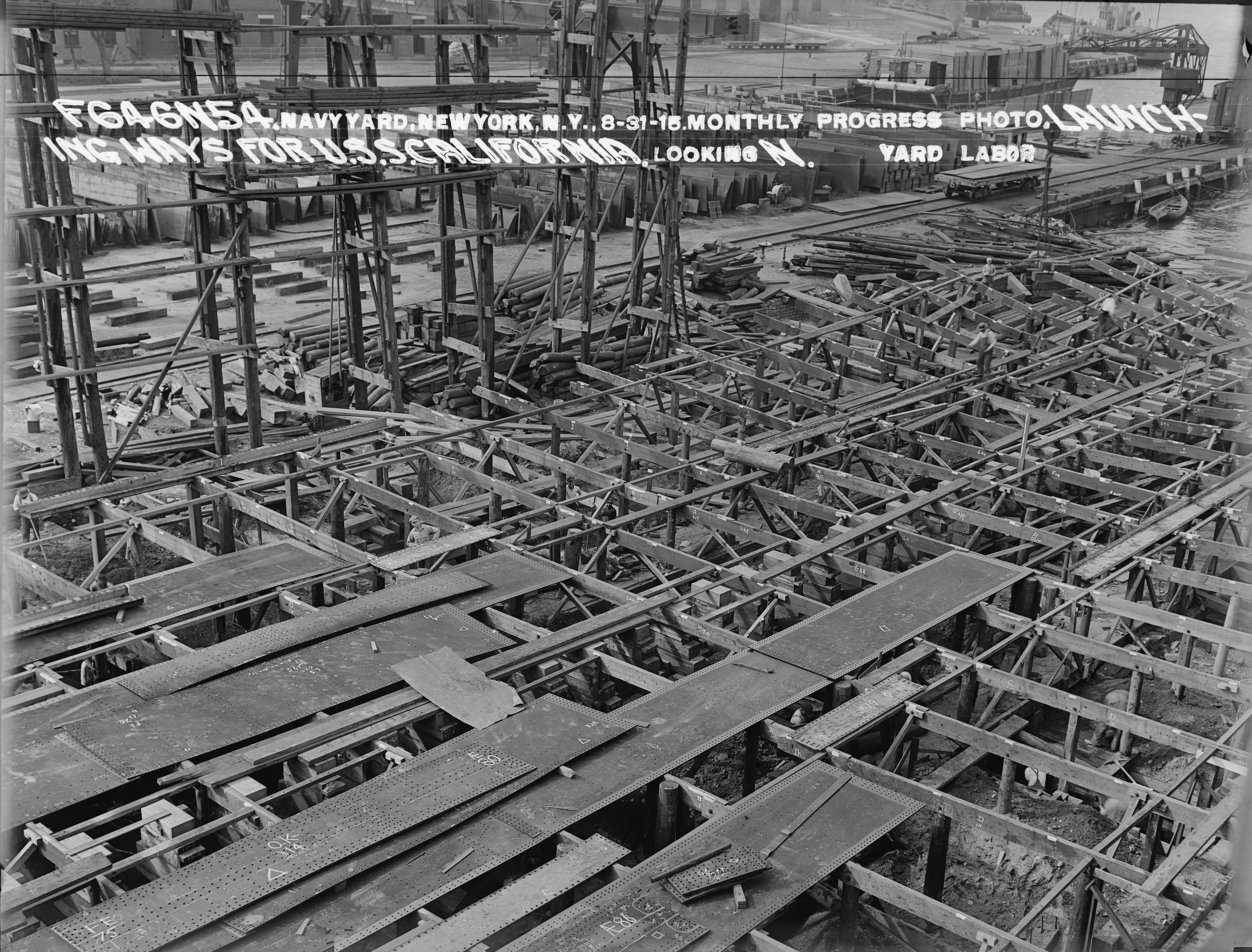 ![]() | 1.05k | Monthly Progress Photo, Launching Ways For California, Looking North, Yard Labor, 31 August 1915. | National Archives Identifier: 6038391 Photo courtesy of catalog.archives.gov |