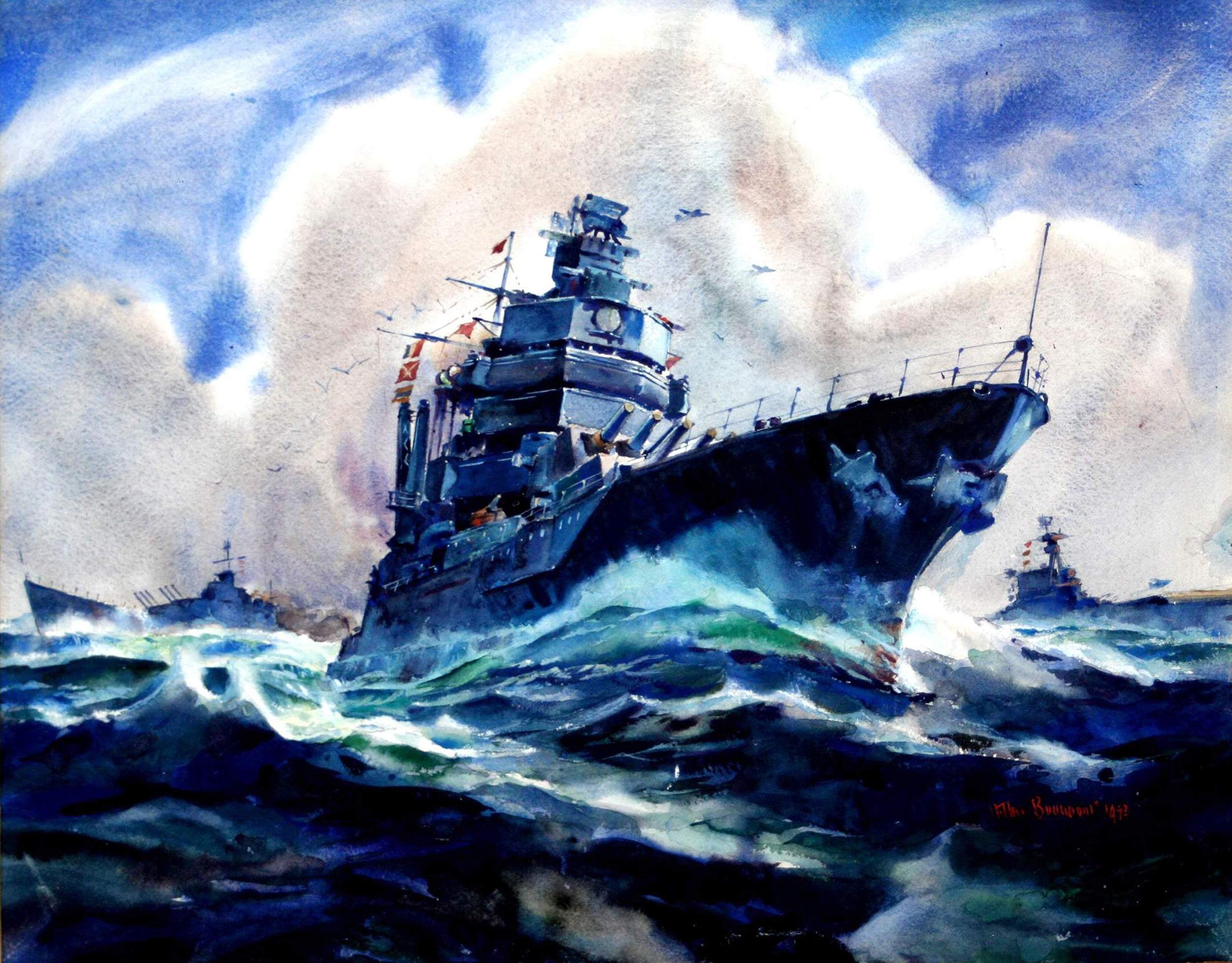 Water color of the New Mexico (BB-40) painted by the artist Henry Beaumont. |