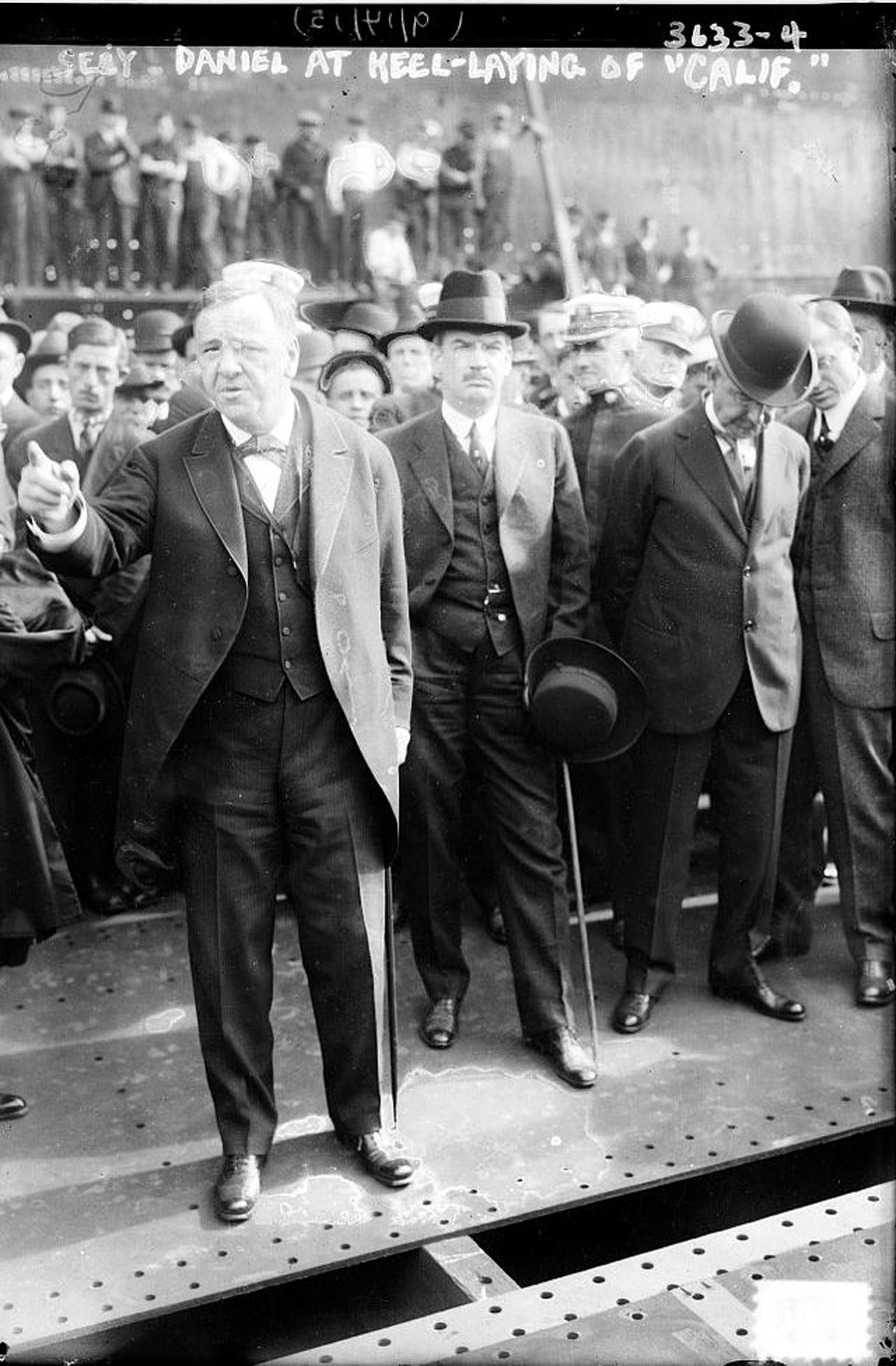 592k | Secretary of the Navy Josephus Daniels and other dignitaries attending the keel laying of the then named battleship California on 14 October 1915. The ship, renamed New Mexico (BB-40) was the lead ship in this class of battleships. | Text i.d. via Ed Cleary Source: Library of Congress, Photo No. LC-B2-3633-4. via Mike Green. |