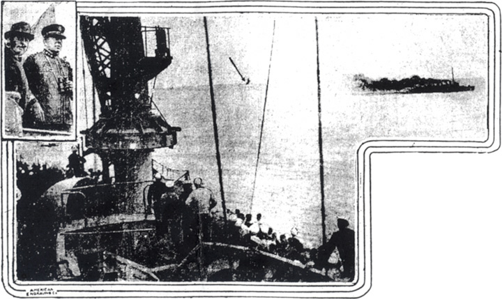 789k | Looking forward from the aft fighting top of the New Mexico, the flagship of the Pacific Fleet, showing a part of the modern dreadnought's complicated equipment. The ship's garbage incinerator (to the right of the stack) is a novel piece of deck equipment. | Times World Wide Photo, text courtesy of N.Y. Times 24 August 1919, Page 6, courtesy of memory.loc.gov. Insert Image and text provided by Library of Congress, Washington, DC. Photo from New-York Tribune. (New York [N.Y.]) 1866-1924, 24 August 1919, Image 45, via chroniclingamerica.loc.gov. |