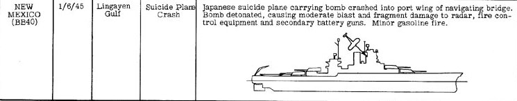 Damage caused to the New Mexico (BB-40) after being hit by a Kamikaze on 6 January 1945. |