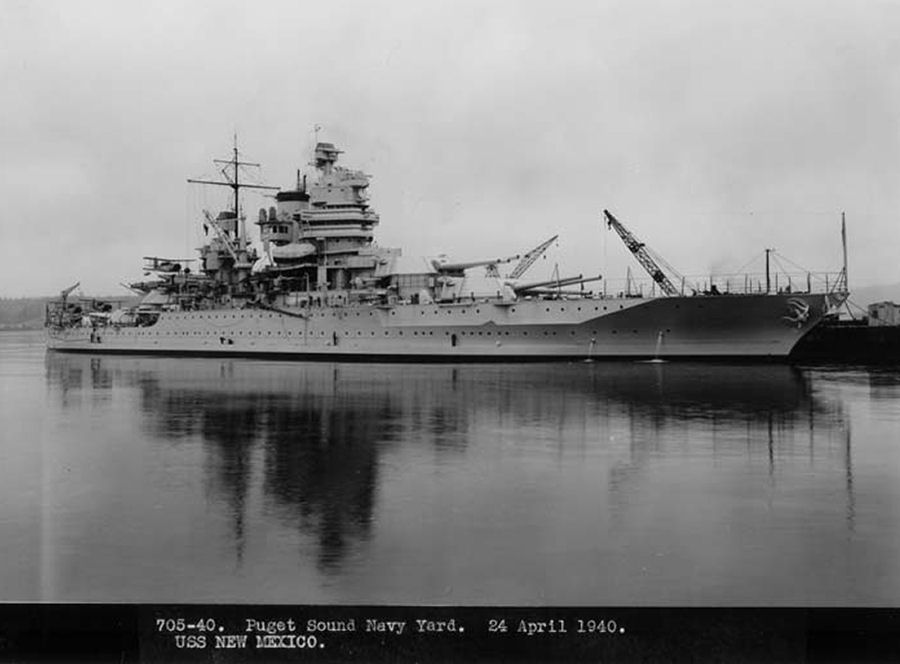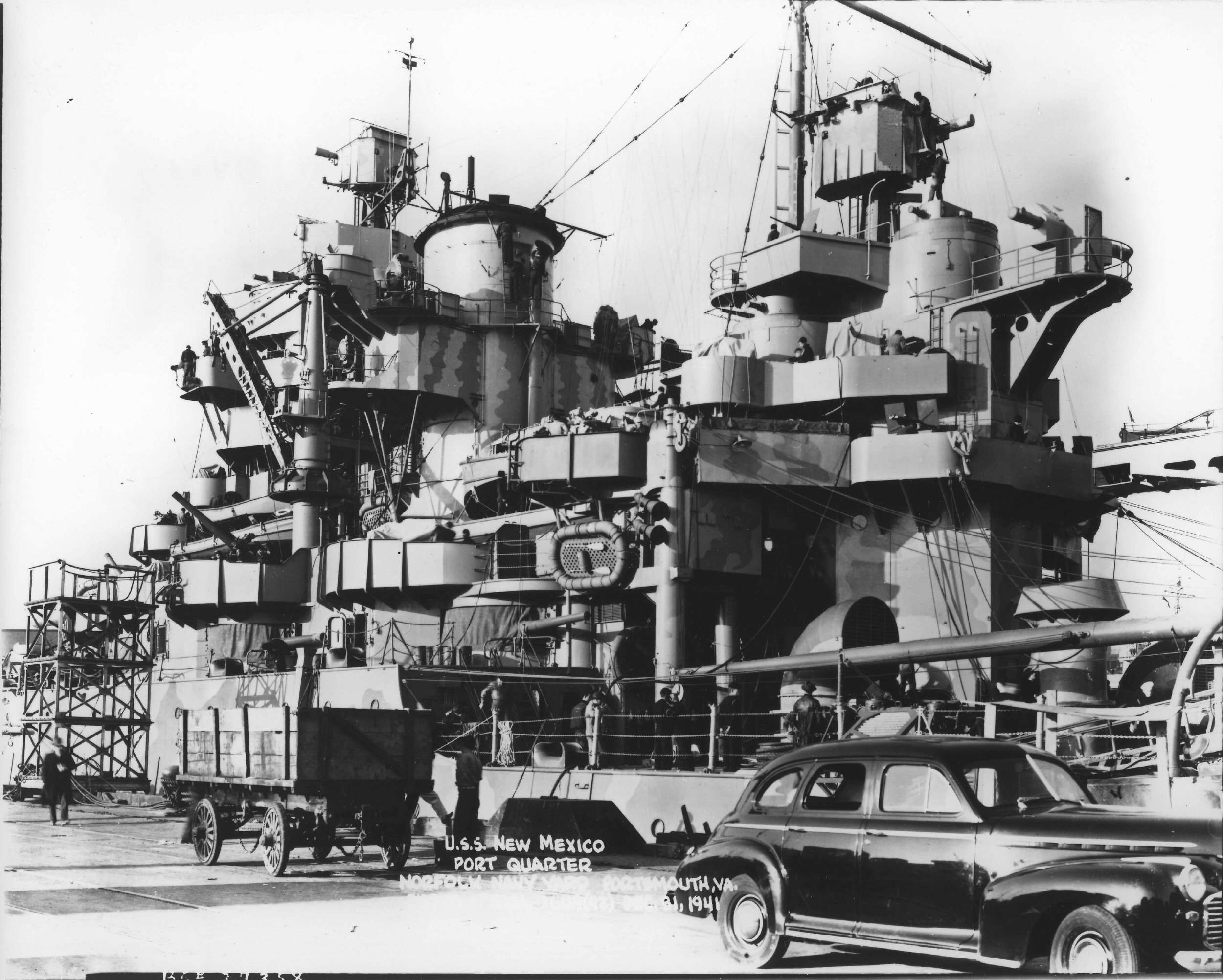 October 1944 stern shot of the New Mexico (BB-40) at Puget Sound Navy Yard.