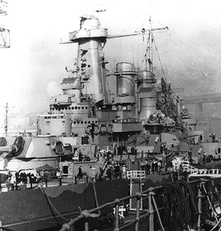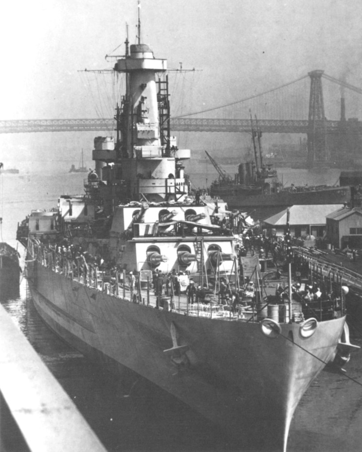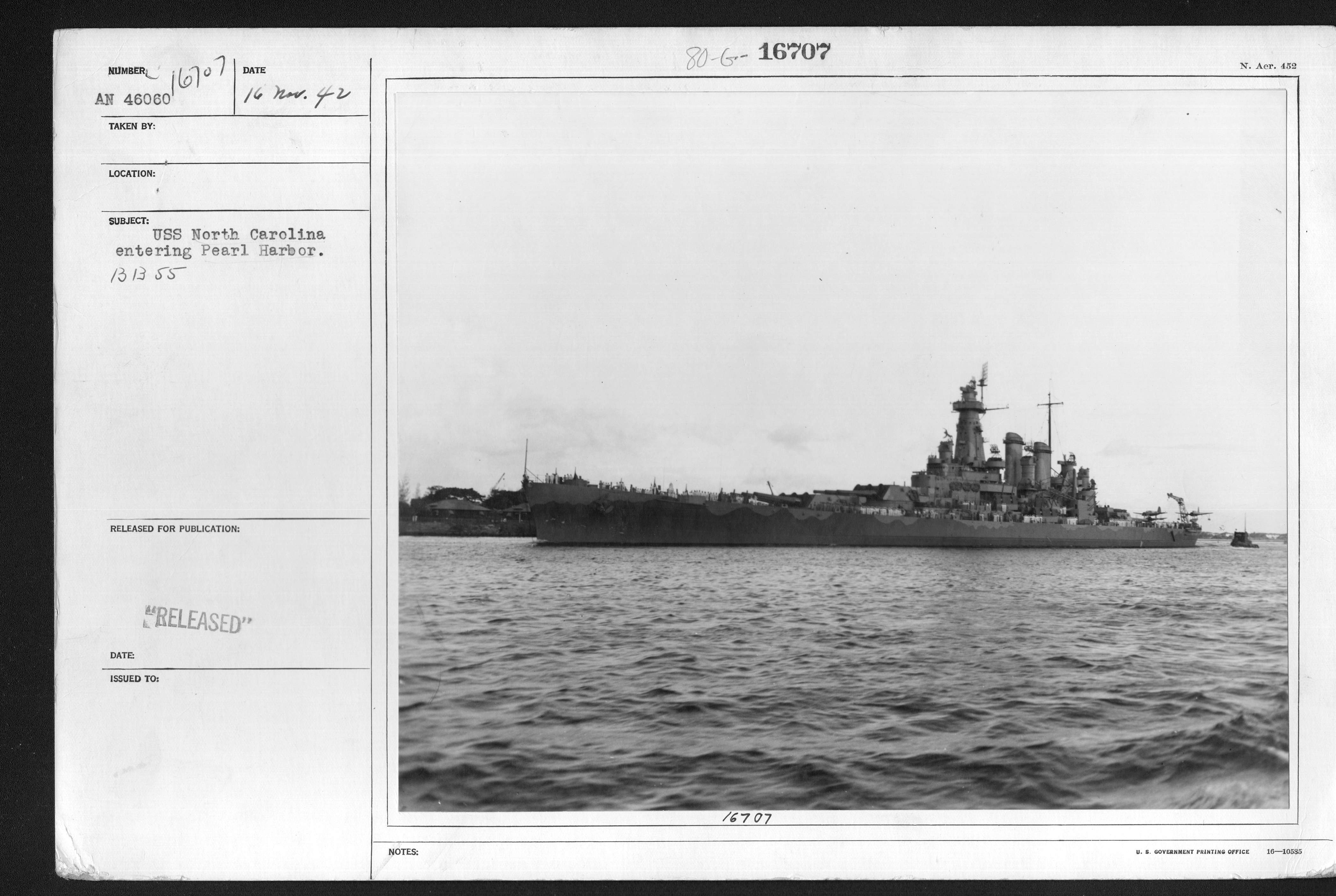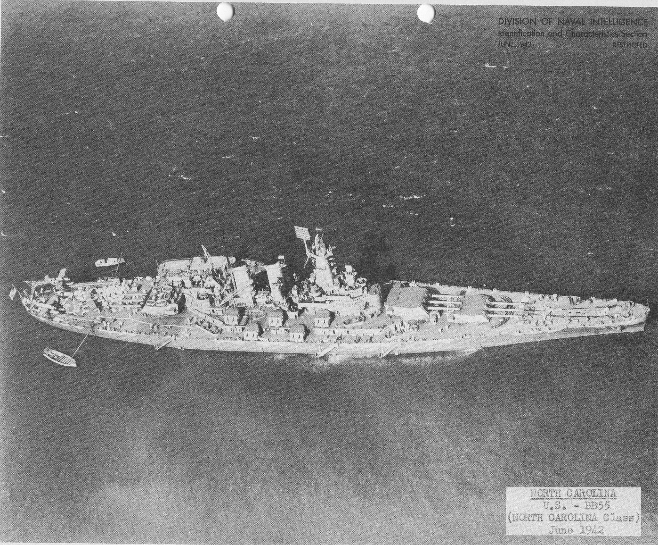 ![]() | 734k | Bow on view of North Carolina (BB-55) fitting out at the New York Navy Yard circa March-April 1941, about the time she was commissioned. | Source: Naval History and Heritage Command, Photo No. NH 44715 via Mike Green. | |