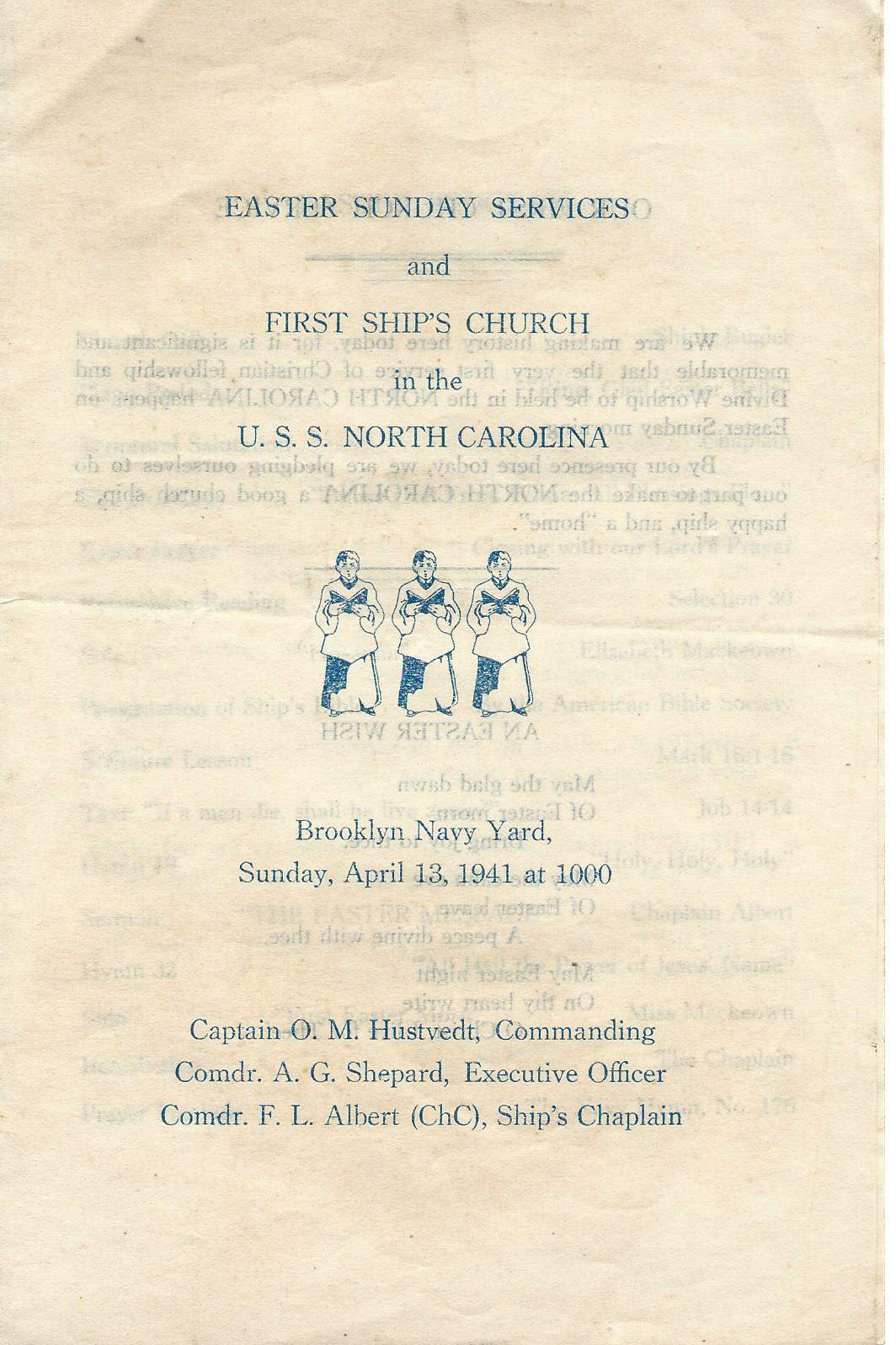 699k | First Ships Church Easter Program, 13 April 1941. | Photo from the Author's Collection. | |