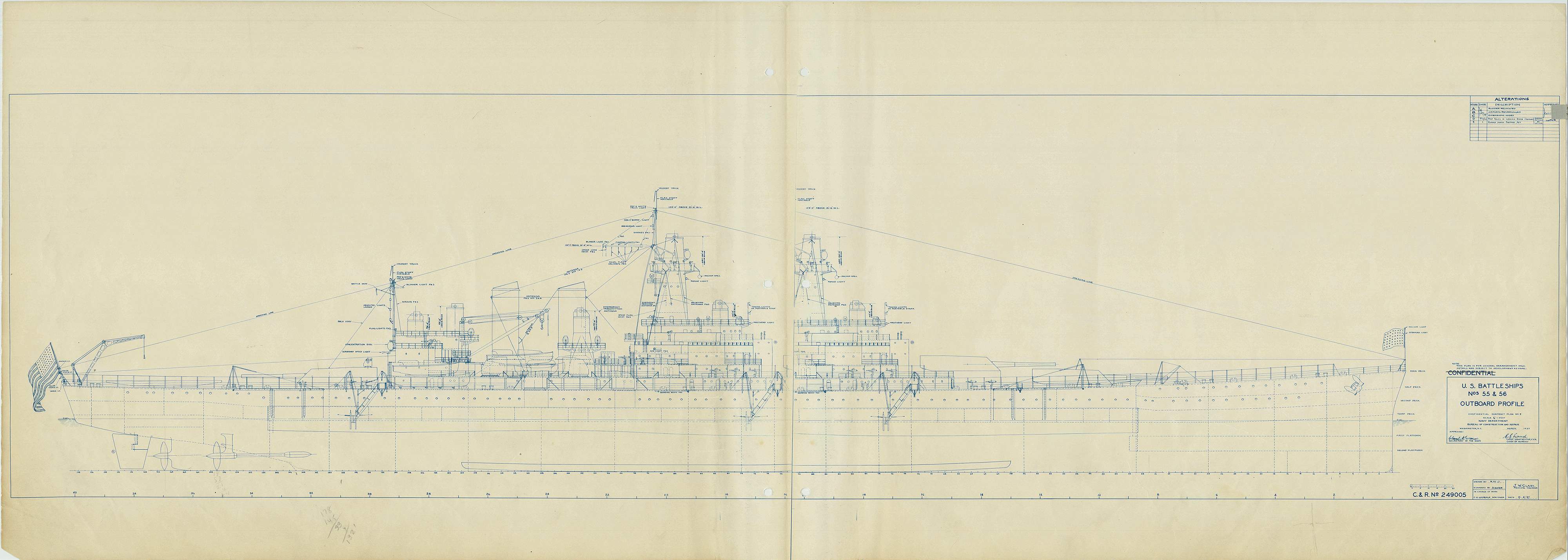 ![]() | 422k | Proposed Outboard Profile for U.S. Battleships (BB-55 / 56), 4 May 1937. | National Archives Identifier: 31491079 Photo courtesy of catalog.archives.gov | |