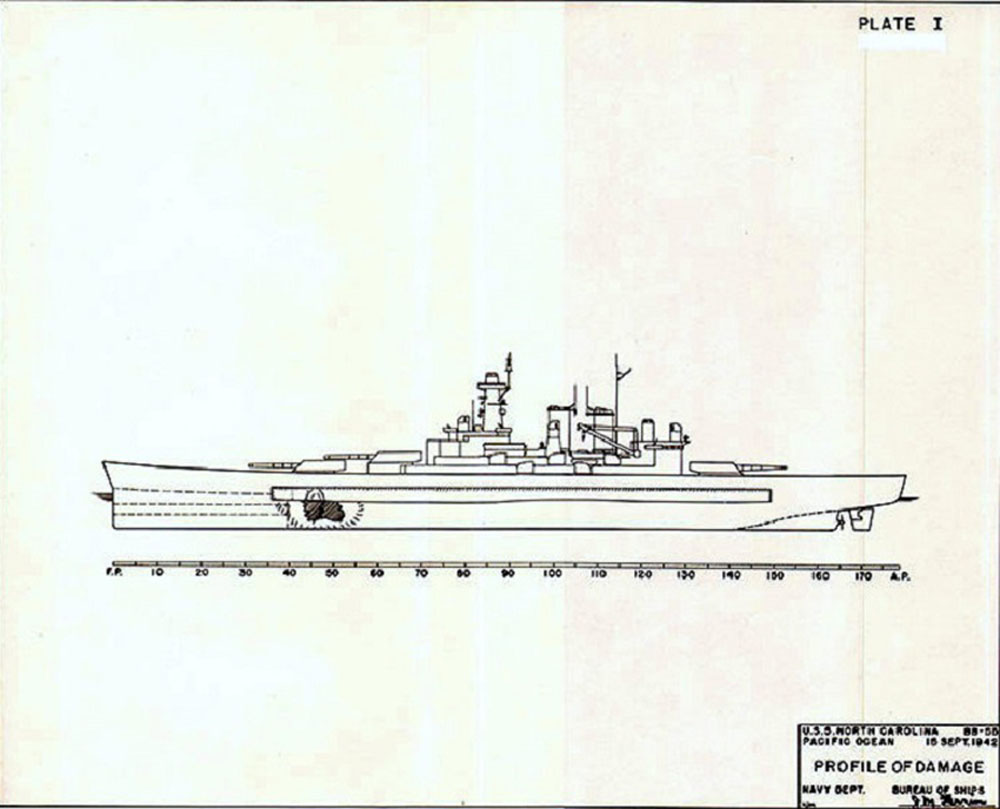 ![]() | 1.50k | Outboard profile, General Arangement Plan # 216402 for Battleships of the North Carolina Class (BB-55 / 56), dated 26 September 1939. | USN photo courtesy of Pieter Bakels. | |