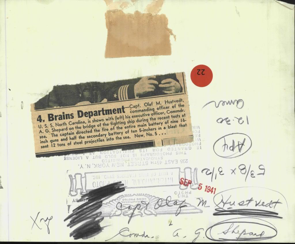 ![]() 015501h | 3.30k | 10 April 1941 Newspaper clipping on the North Carolina family of ships. | Photo courtesy of Darryl L. Baker. | |