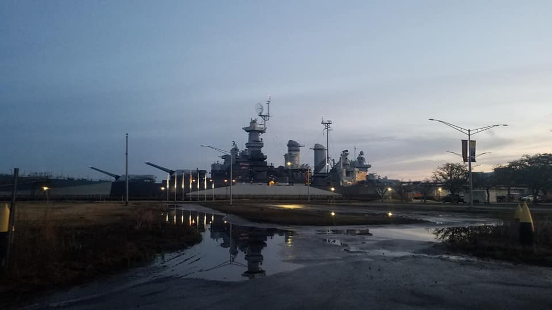 275k | North Carolina (BB-55) in the early morning. | Photo courtesy of Yu Chu. | |