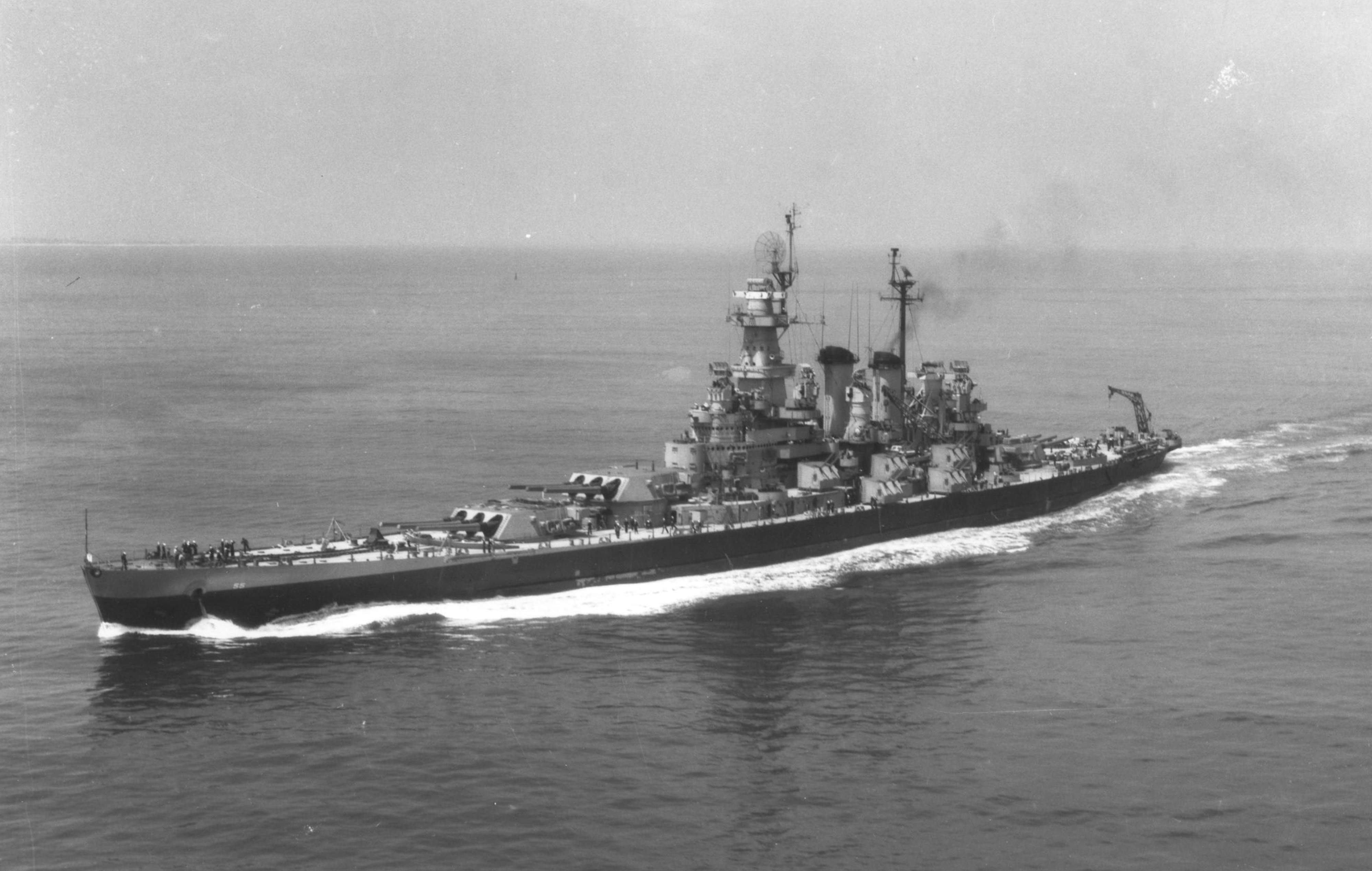 ![]() | 2.31k | Sliding down the building ways, as she is launched at the New York Navy Yard, 13 June 1940. Note the slope of her side armor, angled outward 15 degrees to increase its effective thickness against incoming enemy shells. | Text courtesy of Naval History and Heritage Command # NH 44899. Photo courtesy of seastories.battleshipnc.com | |