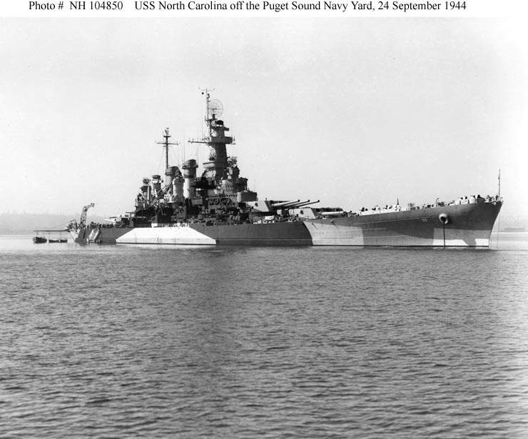 ![]() | 82k | The North Carolina (BB-55) underway near Puget Sound Navy Yard, September, 1944. | USN photo. | |