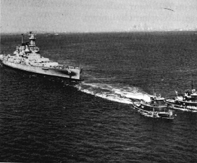 ![]() | 335k | North Carolina (BB-55) is tugged away into mothballs. | USN photo courtesy of David Buell. | |