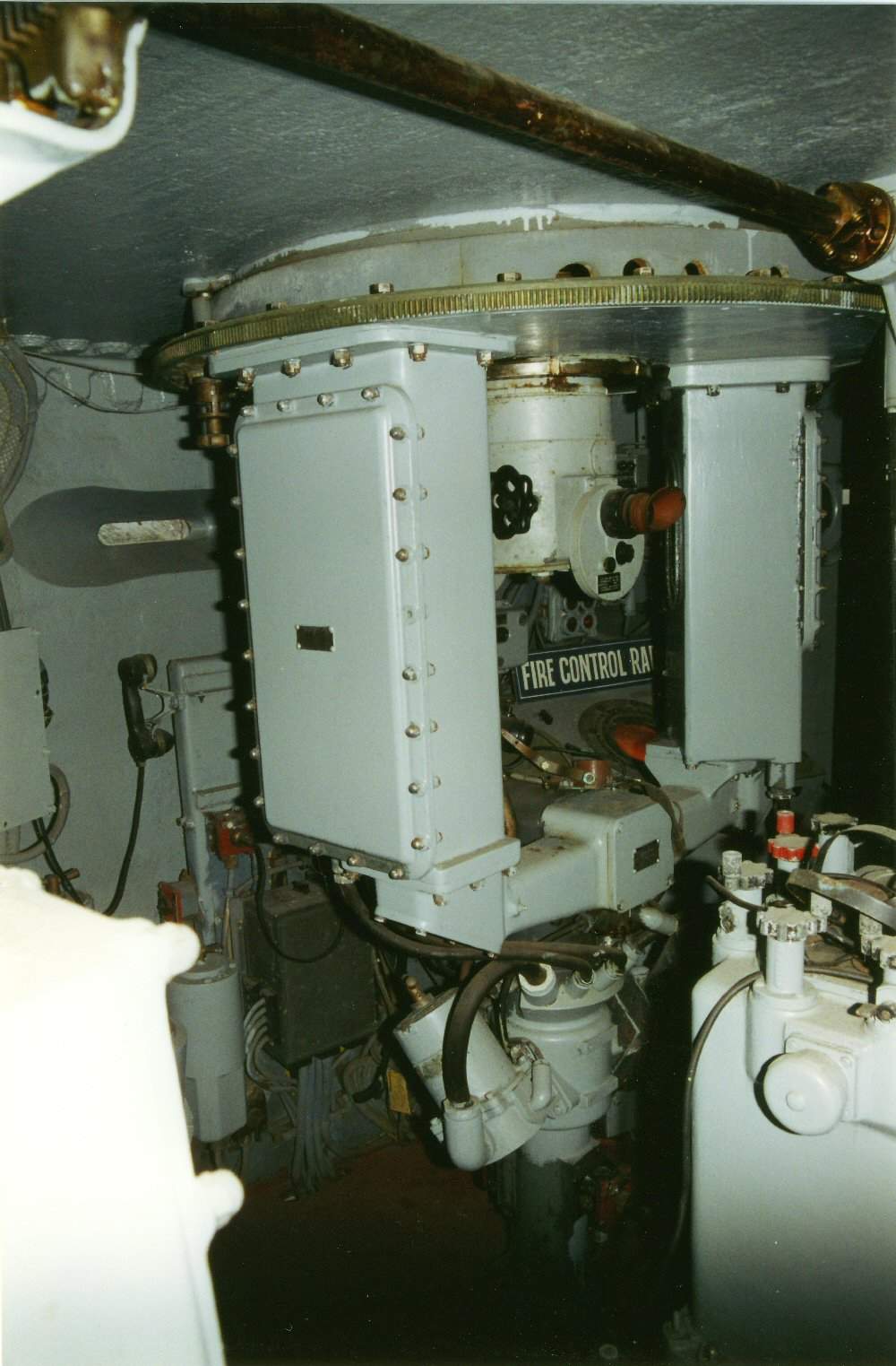 ![]() | 124k | Gun Director Mk.40 aboard North Carolina (BB-55) in 1993. Note periscope Mk.32,the target bearing transmitter and target designator above the training gear drive. | Photo courtesy of Pieter Bakels. | |