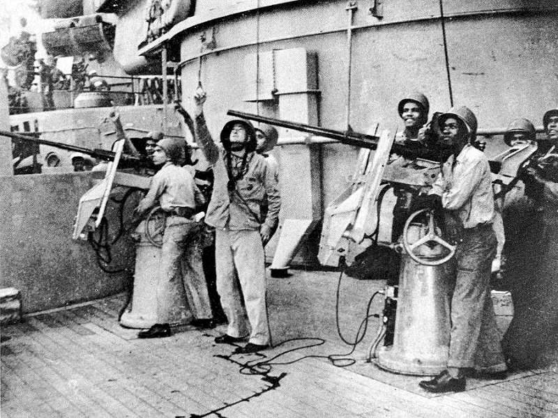 ![]() | 413k | Straight up to the sky point the 20mm's of North Carolina (BB-55), N.Y.N.Y. February 1942. | USN photo courtesy of Ed Zajkowski. | |