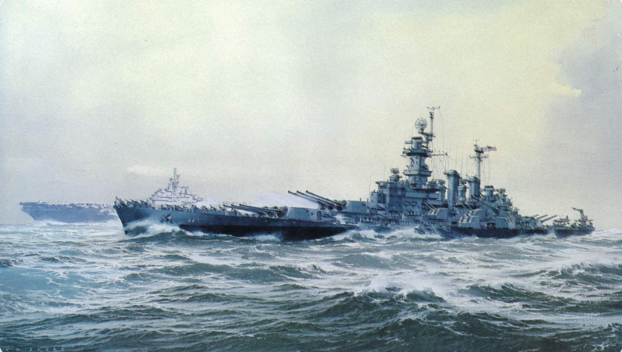 ![]() | 254k | North Carolina (BB-55) pitching in heavy seas while screening Task Force 38.3 off the Philippines, 12 December 1944. | Official USN photo courtesy of Pieter Bakels. | |