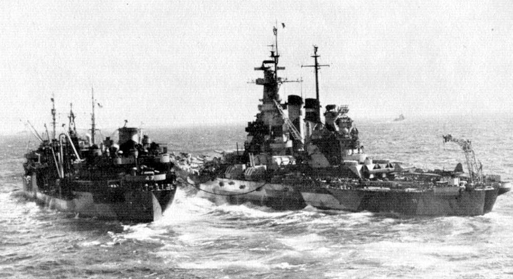 ![]() | 320k | The oiler Taluga (AO-62) refueling North Carolina (BB-55), March 1945. | LaVack picture courtesy of Tommy Trampp. | |